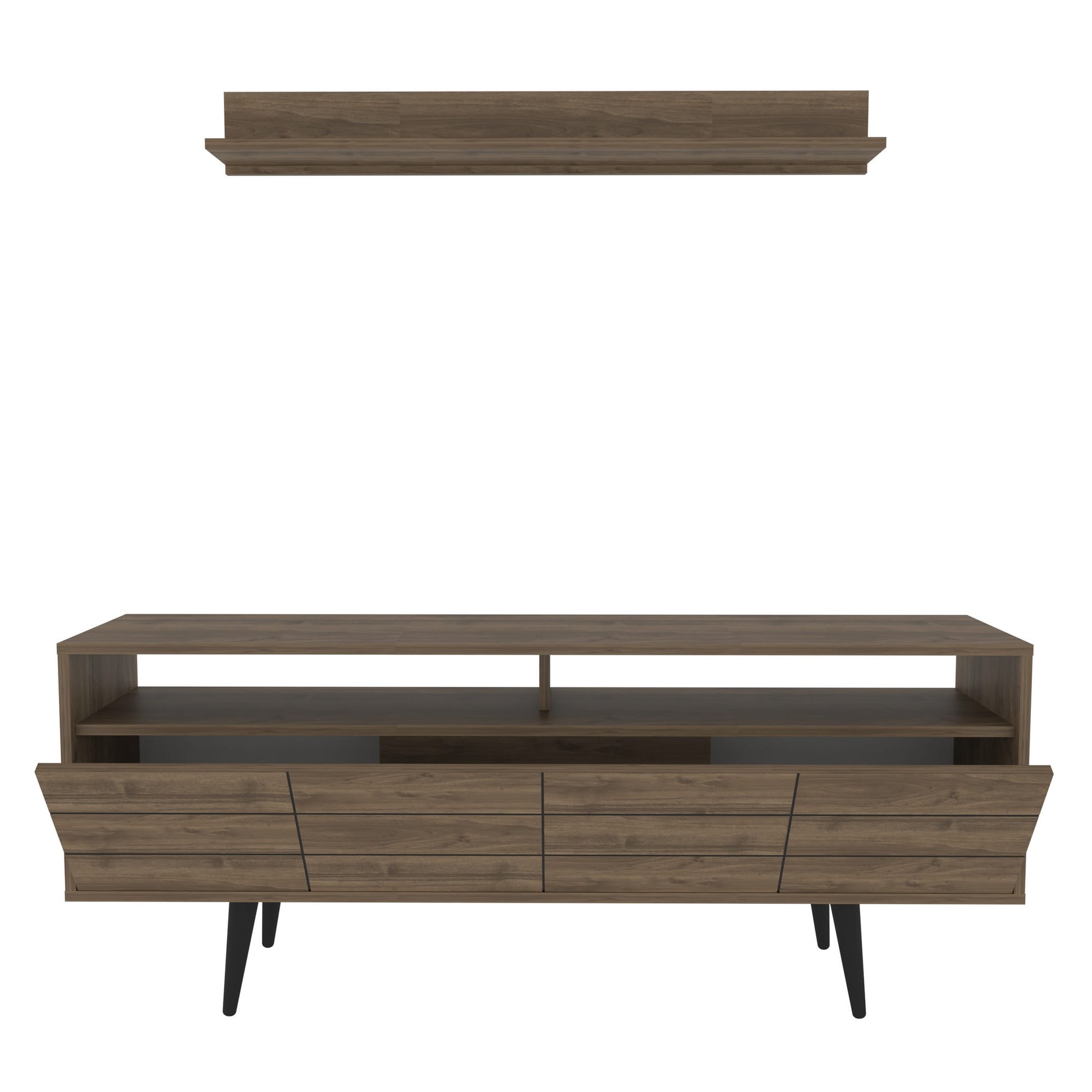 Móvel de TV elegante em nogueira, 160 cm x 35 cm x 64,5 cm | Painel de partículas 100% revestido em melamina, 18 mm de espessura | Perfeito para salas de estar e espaços de entretenimento modernos