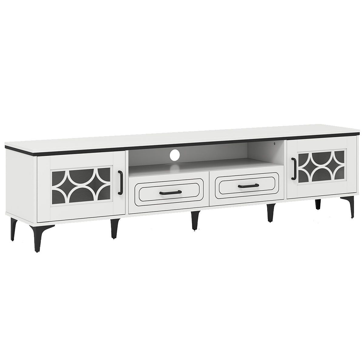 Móvel de TV para TV até 80 polegadas com 2 Gavetas 2 Compartimentos com Porta Estante para Sala 180,5 x 35 x 46 cm Branco