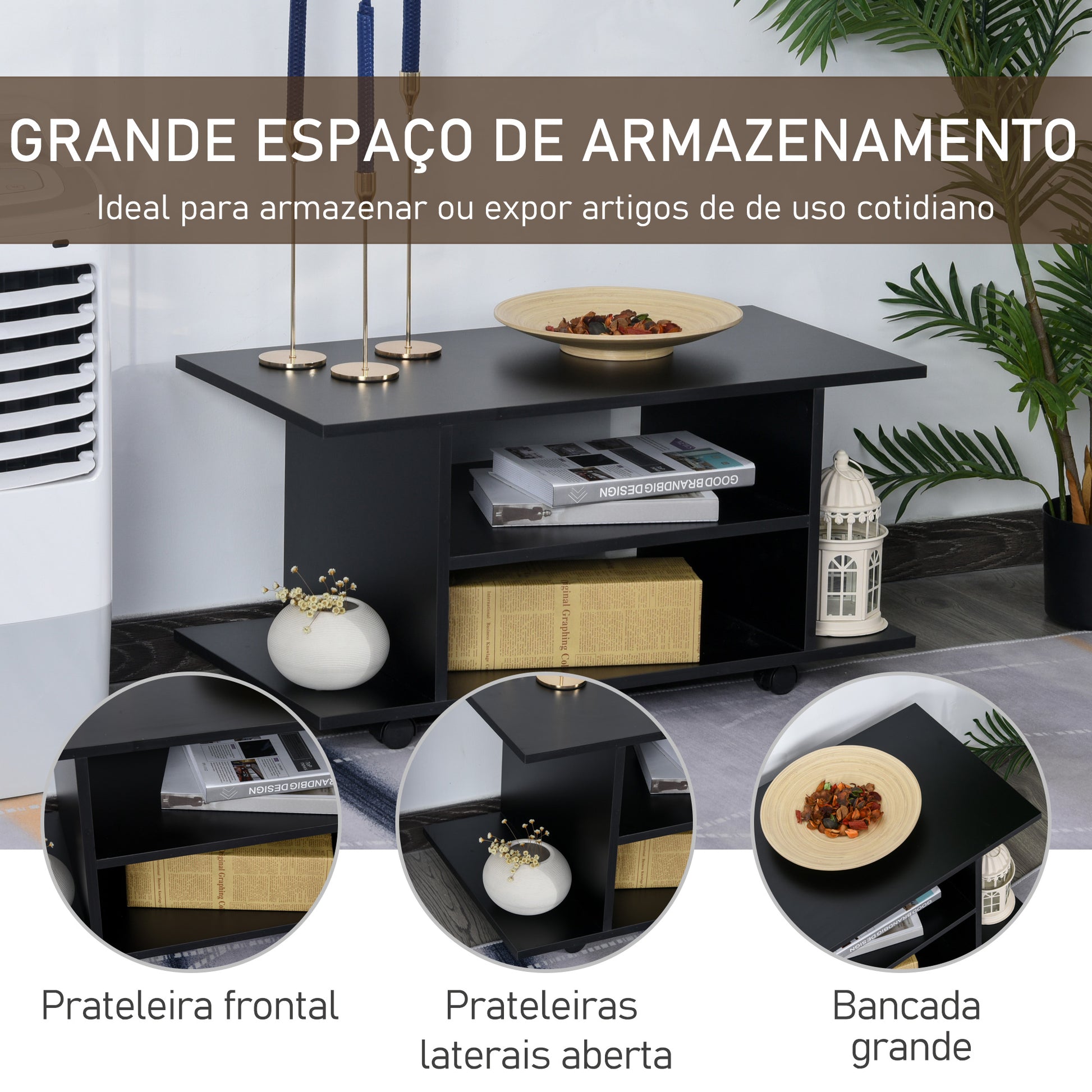 Móvel para TV Preto 80x40x40 cm com Prateleiras e Rodas com Travão
