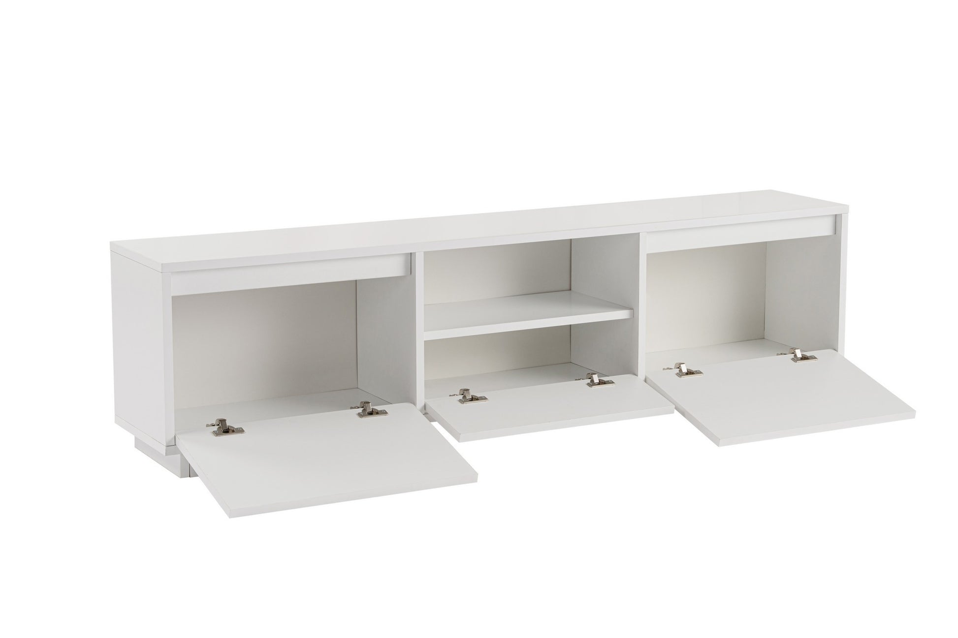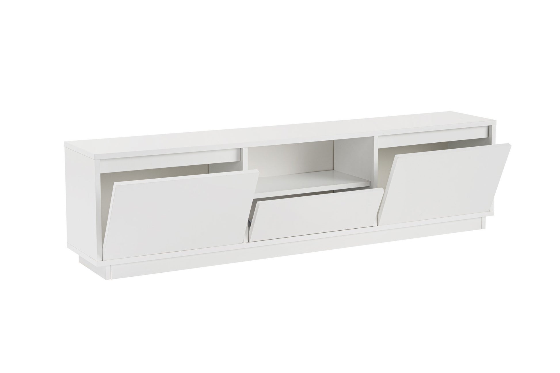 Fabricada com materiais de alta qualidade, a nossa mesa de TV foi construída para durar. O painel de partículas revestido a melamina é resistente a riscos, manchas e danos causados pela água, garantindo que o seu suporte terá um aspeto novo durante muitos anos. A cor branca natural é versátil e intemporal, tornando-a fácil de combinar com qualquer estilo de decoração.