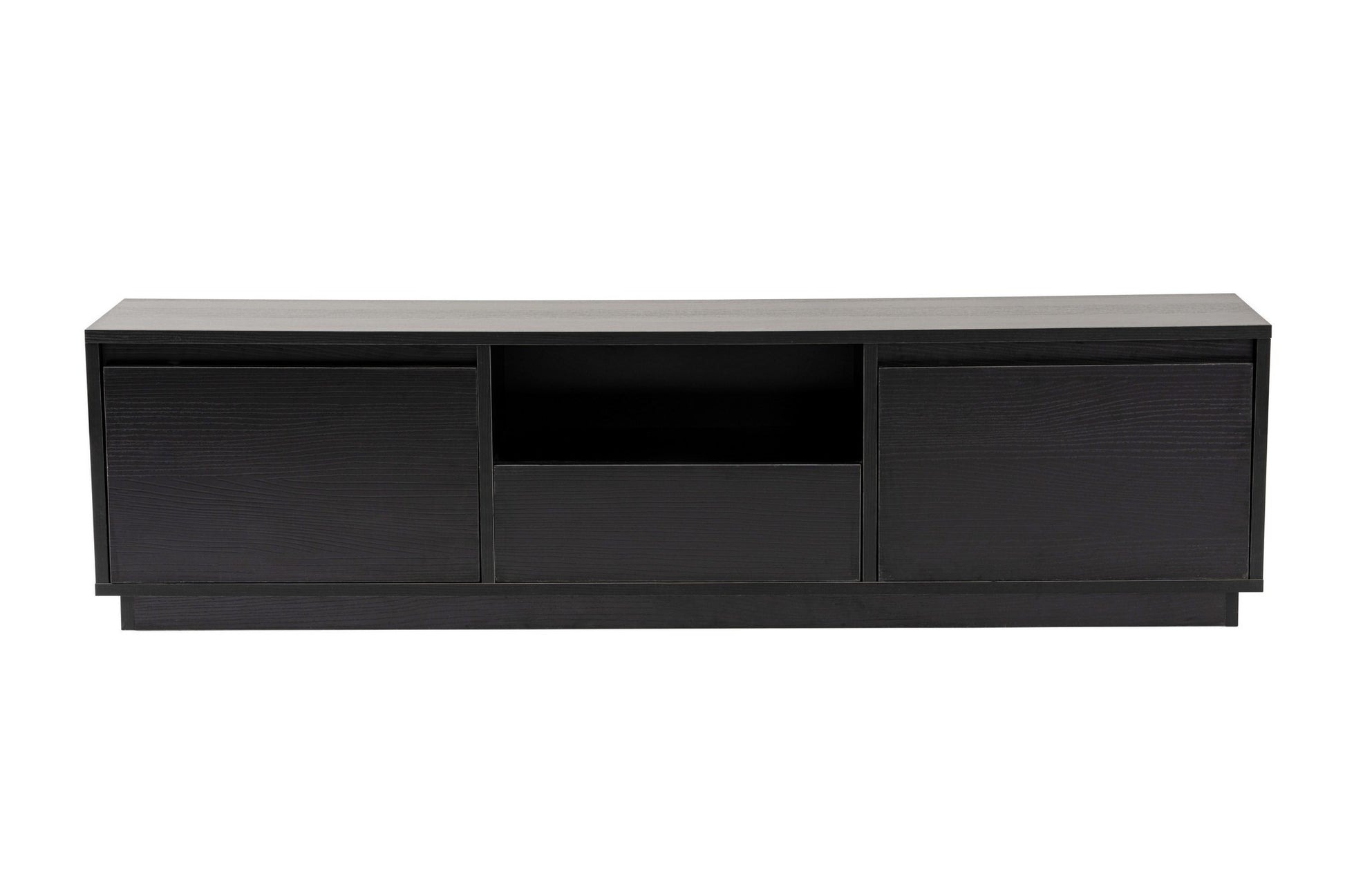Móvel de TV elegante, preto, 160 cm de largura, 42 cm de altura, 29,5 cm de profundidade | Painel de partículas 100% revestido de melamina, 18 mm de espessura | Perfeito para salas de estar modernas