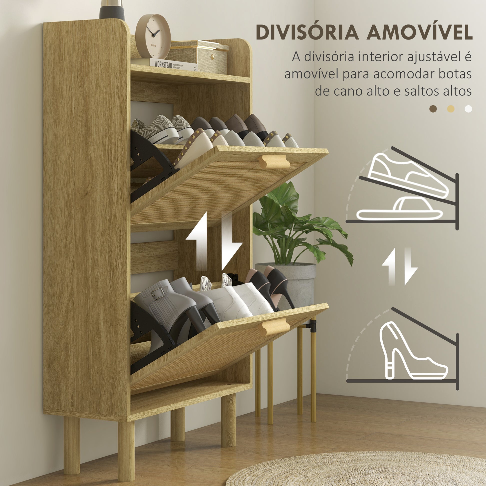 A sapateira boêmia é a escolha perfeita para quem procura estilo e funcionalidade num único móvel. Requer montagem e vem com manual de instruções para facilitar o processo.