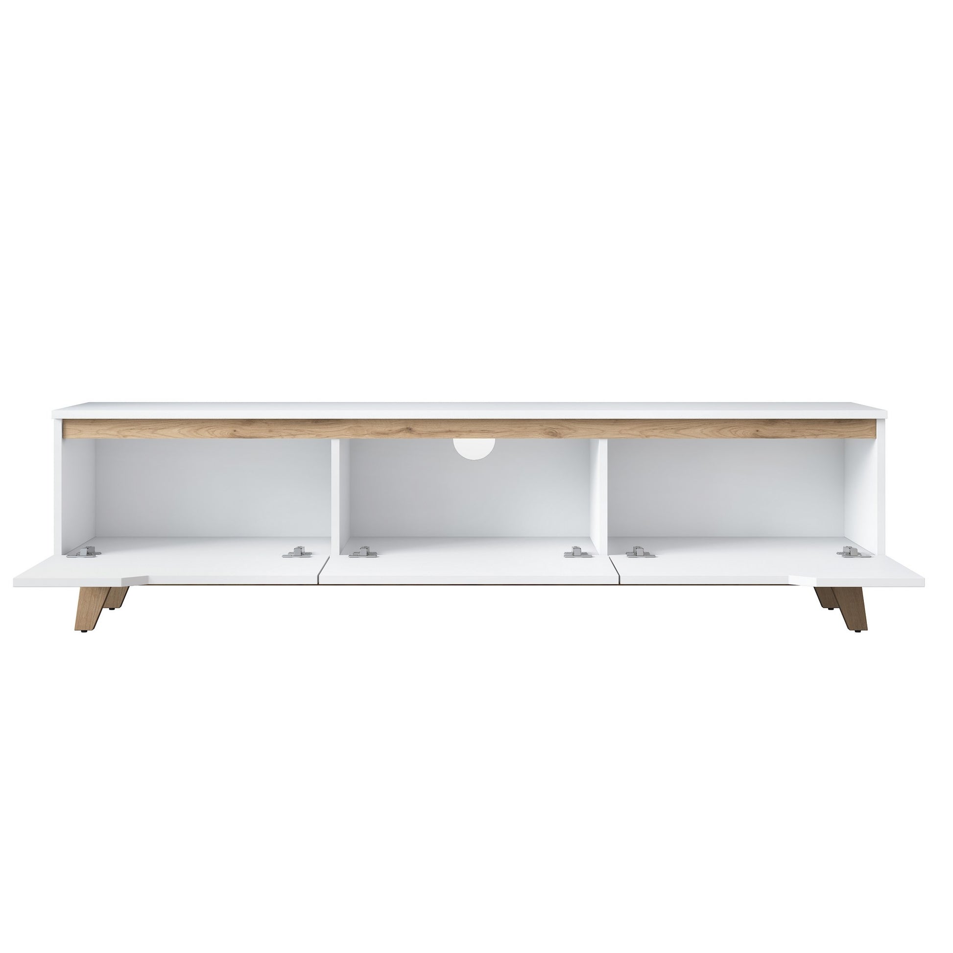 Melhore a sua sala de estar com o nosso fantástico suporte para TV, concebido para proporcionar estilo e funcionalidade à sua casa. Fabricado com painéis de partículas 100% revestidos a melamina, este suporte para televisor foi construído para durar, garantindo anos de prazer.