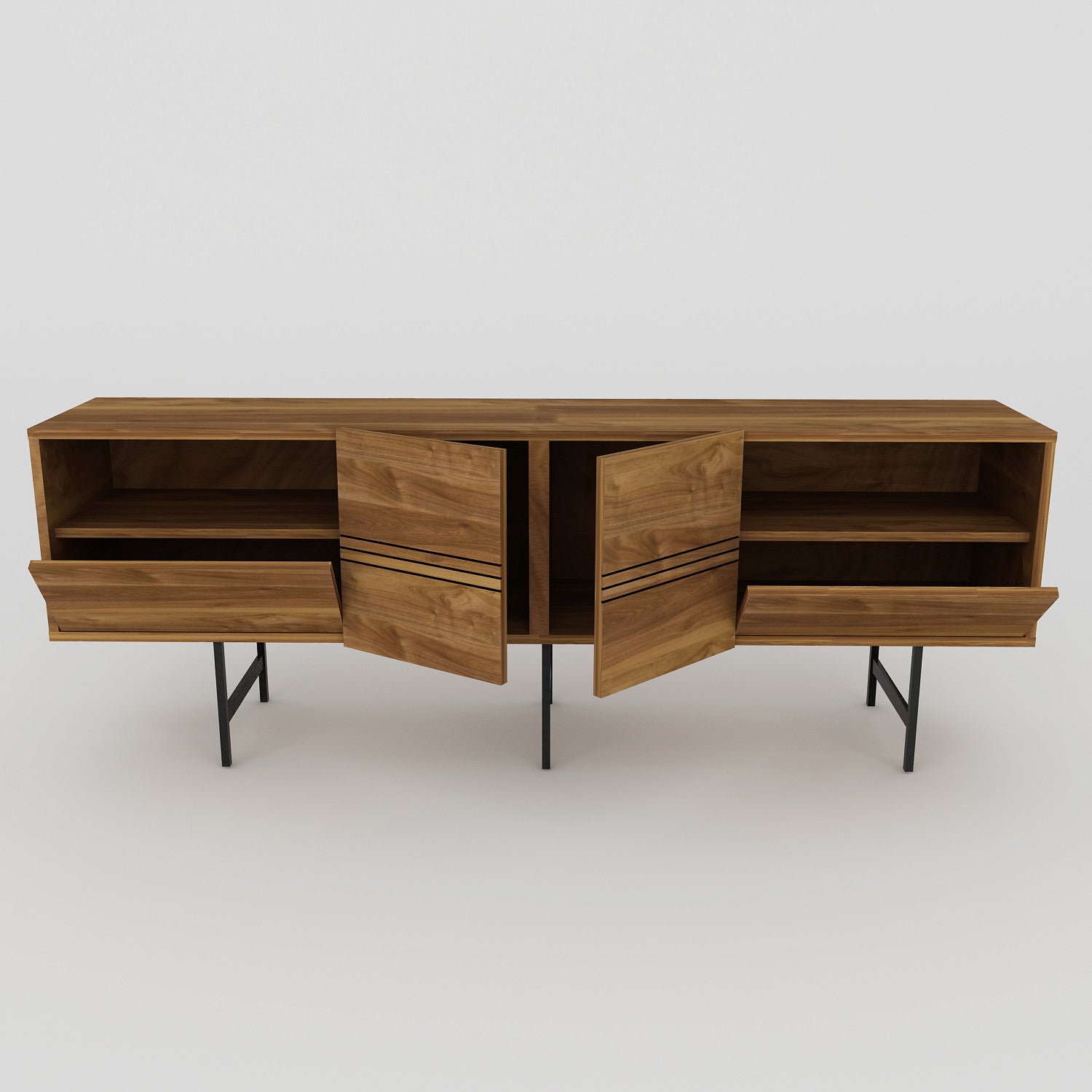 Móvel de TV moderno – 180 cm – nogueira e preto – painel de partículas revestido de melamina