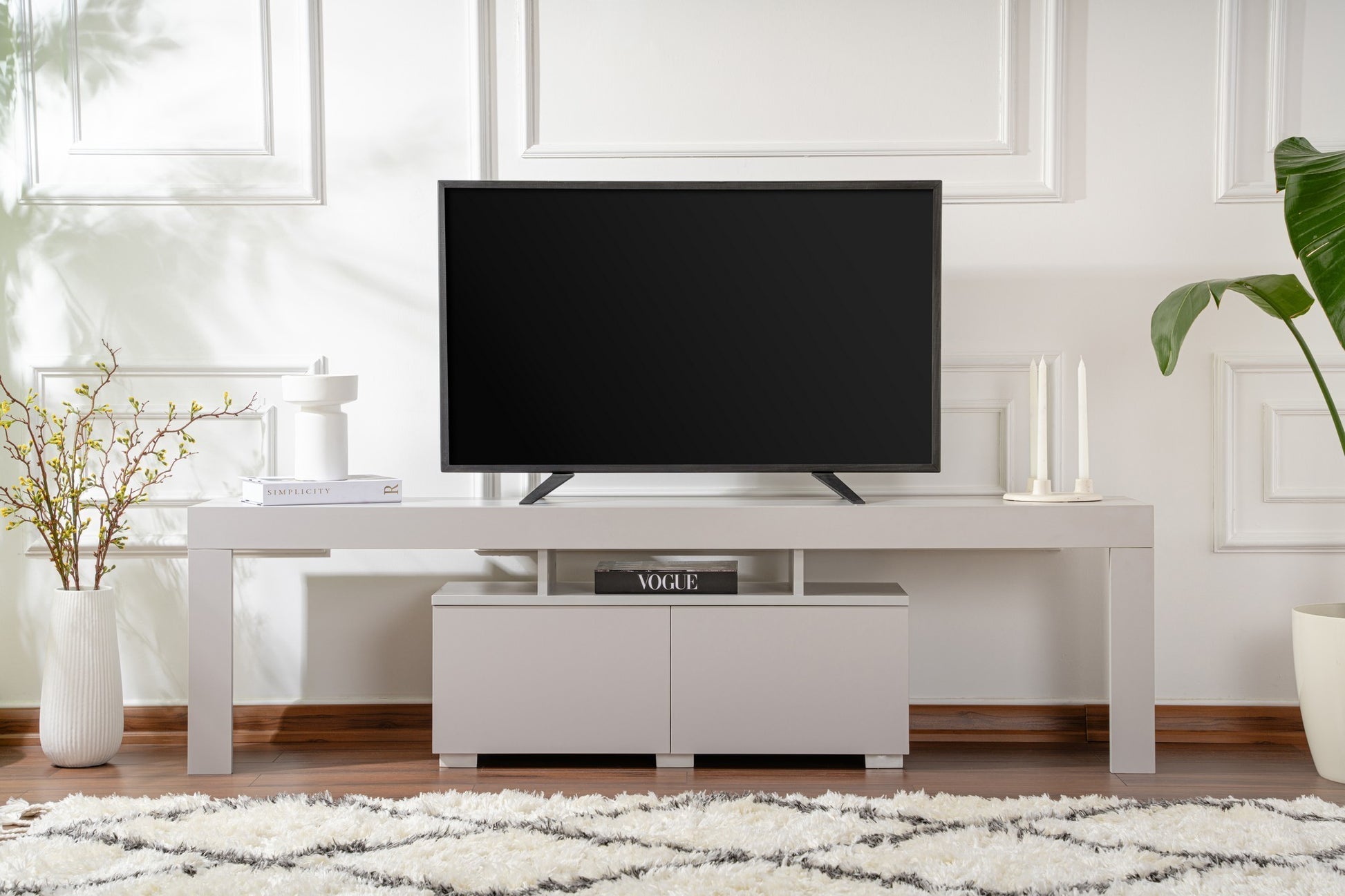 Móvel de TV cinza elegante, 180 cm de largura, 50 cm de altura, 31,3 cm de profundidade | Painel de partículas 100% revestido de melamina, 18 mm de espessura | Perfeito para salas de estar modernas