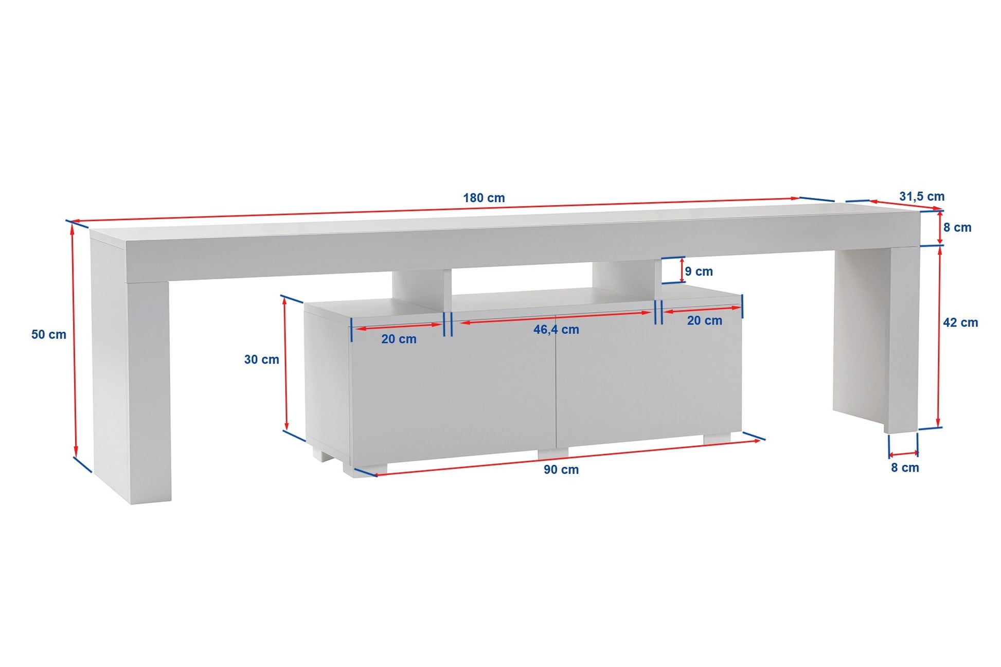 Fabricado a partir de painéis de partículas 100% revestidos a melamina, este suporte para televisão não só é durável e duradouro, como também é fácil de limpar e manter. A espessura de 18 mm garante estabilidade e robustez, enquanto as dimensões generosas de 180 cm de largura, 50 cm de altura e 31. 3 cm de profundidade proporcionam muito espaço para a sua televisão, consolas de jogos, sistema de som e muito mais.