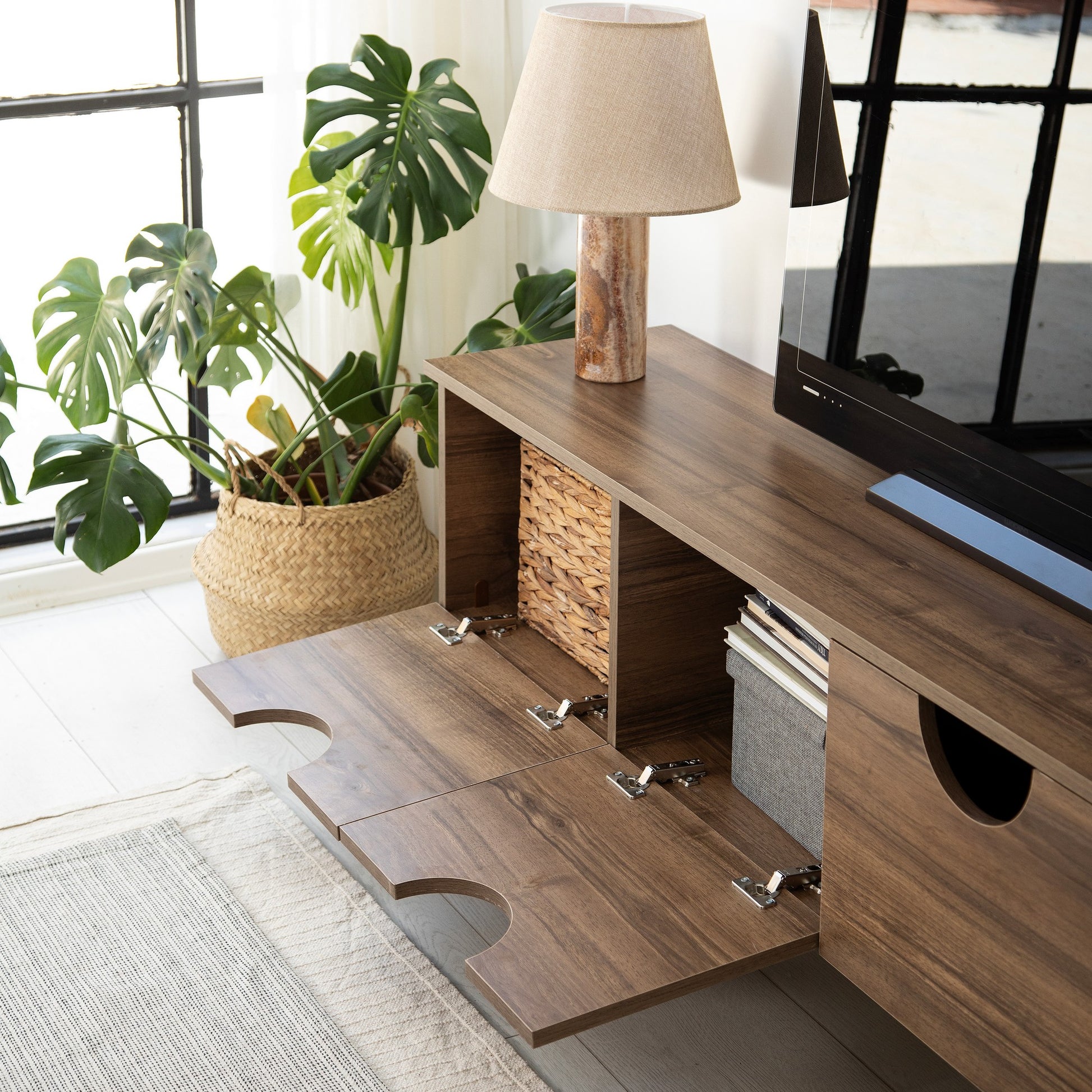Com o seu design espaçoso, o nosso suporte para TV proporciona um amplo espaço de arrumação para todos os seus dispositivos multimédia, incluindo o televisor, consolas de jogos e sistemas de som. A largura de 180 cm garante que pode acomodar confortavelmente ecrãs grandes, permitindo-lhe desfrutar dos seus filmes e programas favoritos com uma nitidez impressionante.