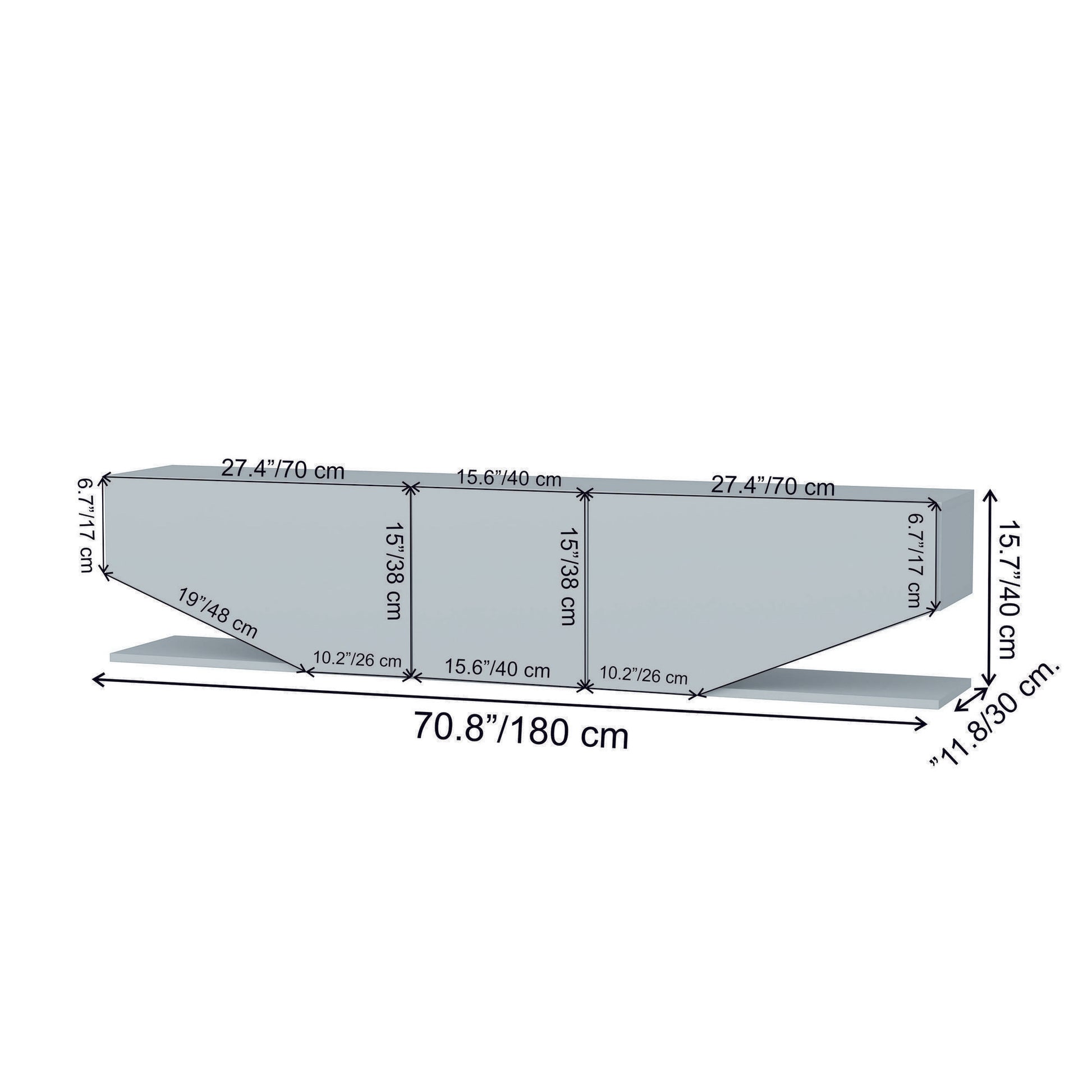 Com uma largura de 180 cm, uma profundidade de 30 cm e uma altura de 45 cm, este suporte para televisão oferece um amplo espaço de arrumação para todos os seus objectos de entretenimento essenciais. Quer se trate das suas consolas de jogos, da sua coleção de DVD ou do seu sistema de som, este suporte tem tudo o que precisa. Mantenha o seu espaço de vida organizado e sem desordem com as várias prateleiras e compartimentos.