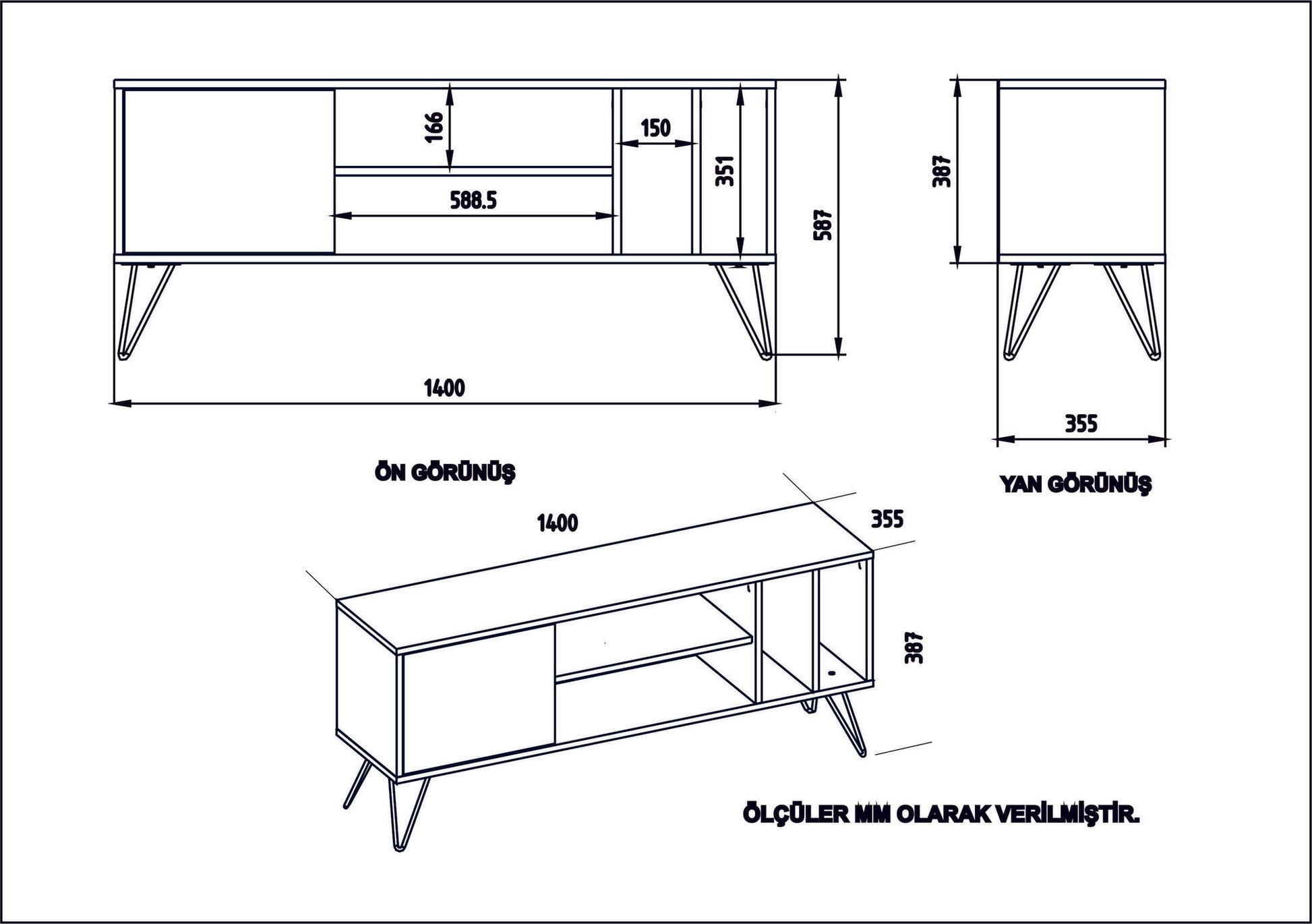 - Tamanho do suporte para TV: Largura: 140cm, Altura: 58. 7cm, profundidade: 35. 5cm