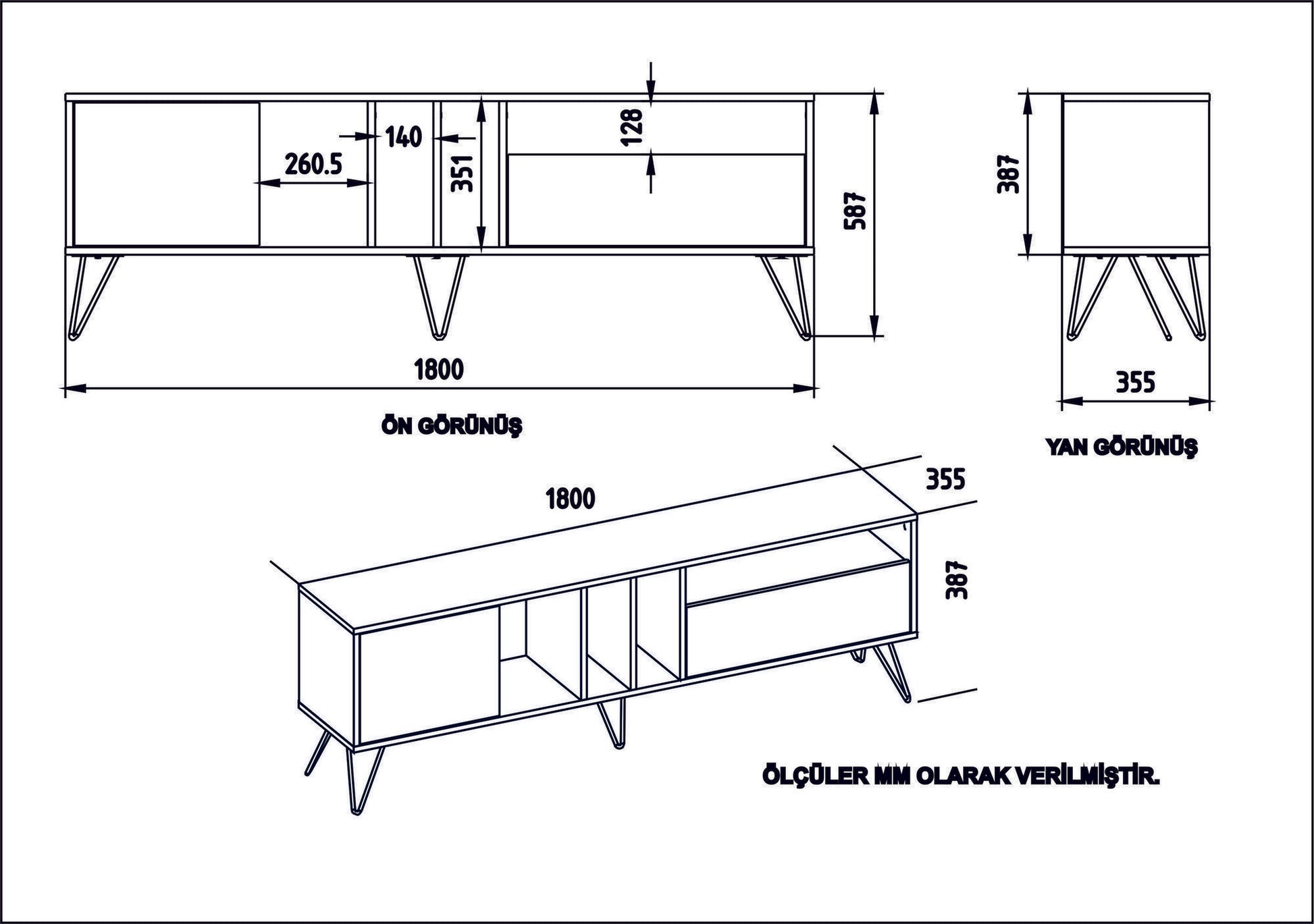 - Tamanho do suporte para TV: Largura: 180 cm, Altura: 58. 7 cm, profundidade: 35. 5 cm