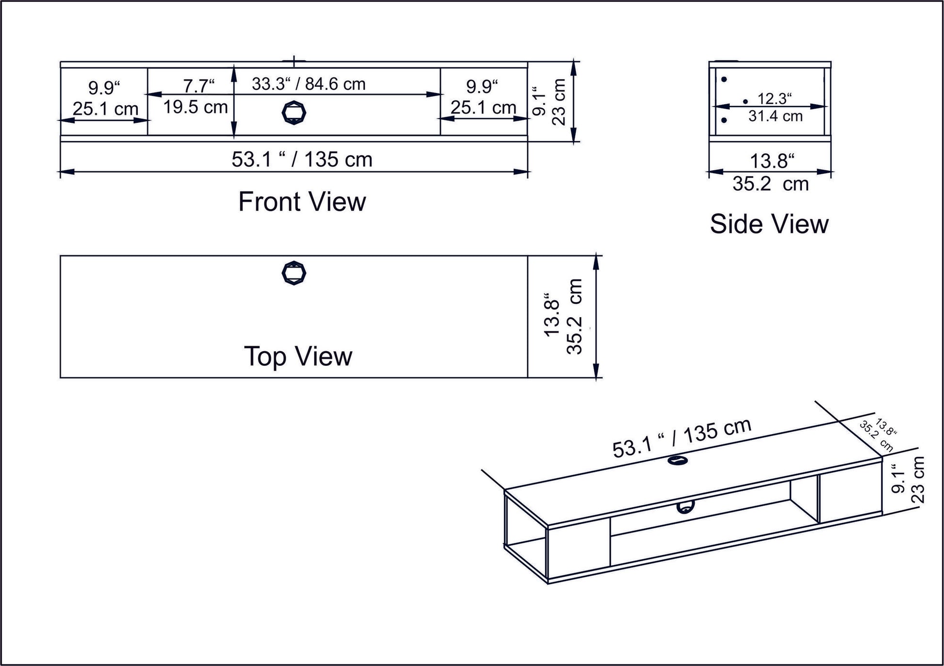 - Tamanho do suporte para TV: Largura: 135 cm, Altura: 23 cm, Profundidade: 35,2 cm