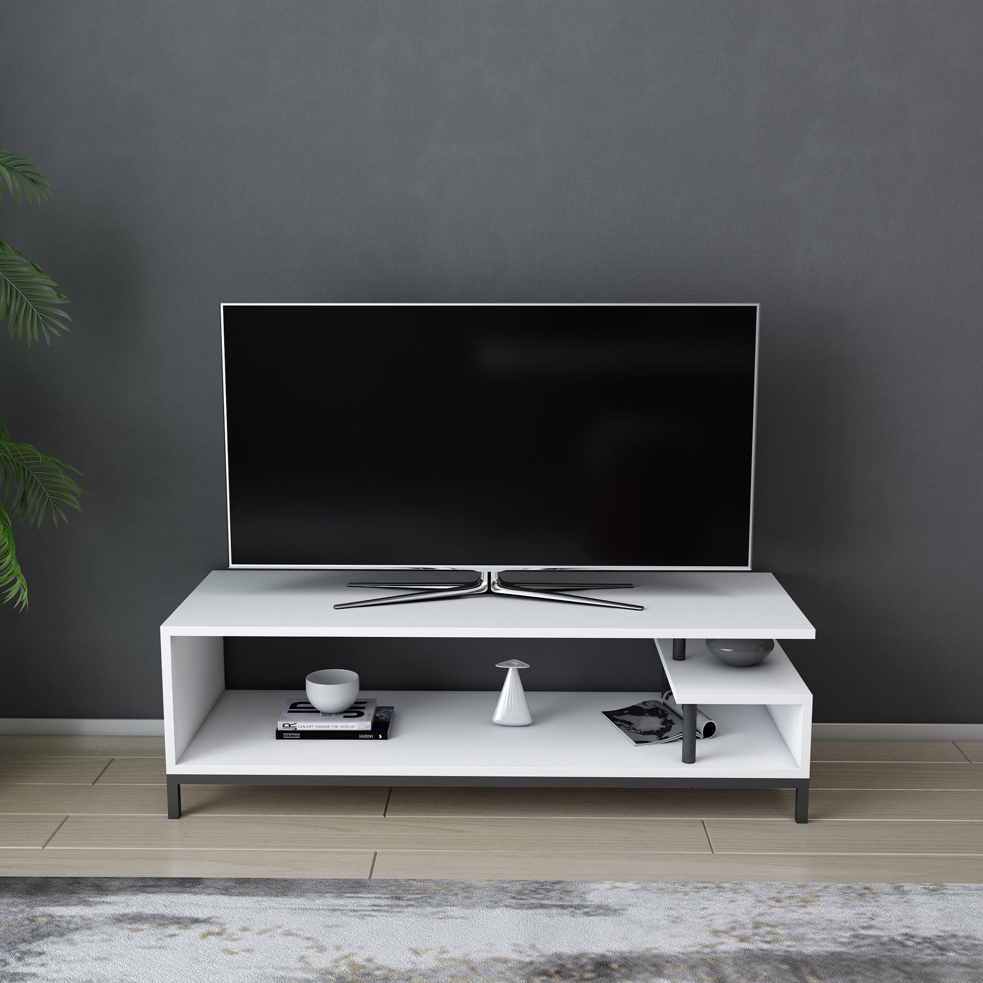 Com uma superfície superior espaçosa, este suporte para televisão pode acomodar televisores até 120 cm de largura. O painel de partículas revestido a melamina com 18 mm de espessura garante durabilidade e estabilidade, proporcionando uma base robusta para o seu televisor.