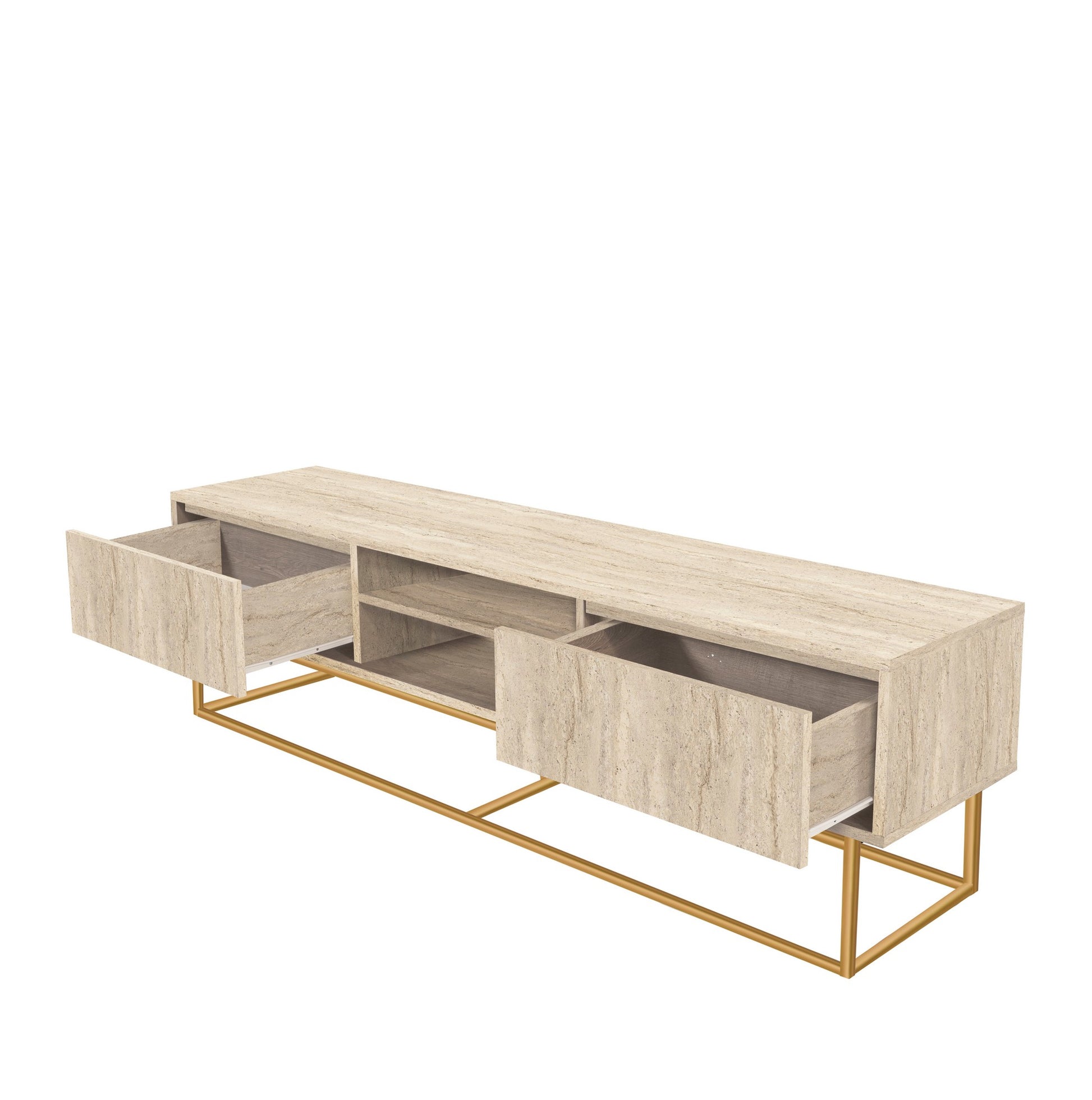 Móvel de TV – 180 x 50 x 40 cm – Travertino – MDF e Metal