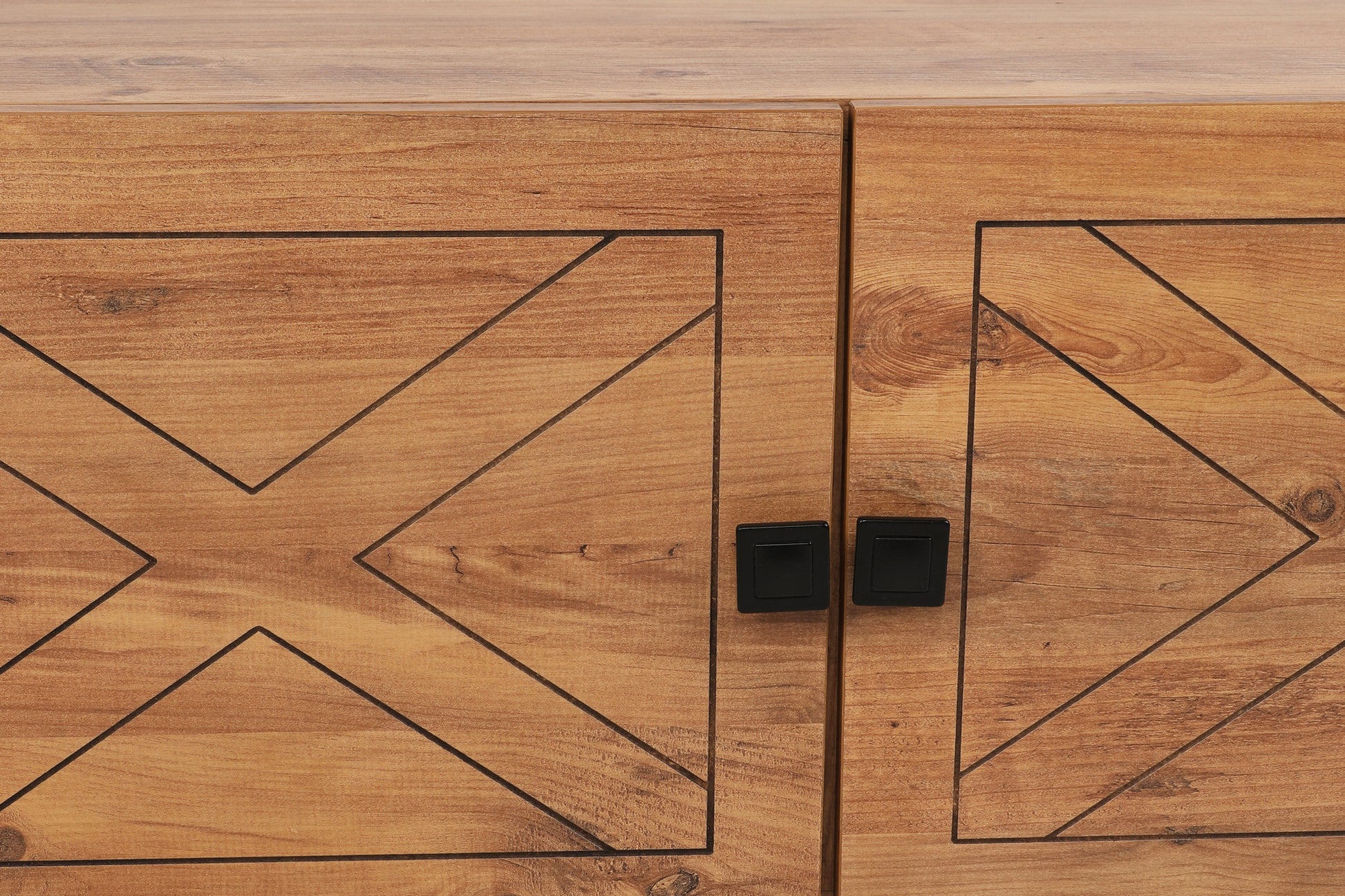 Com o seu acabamento em cor de pinho, este suporte de TV exala um encanto rústico que cria instantaneamente uma atmosfera acolhedora. Os padrões naturais do grão da madeira e os pormenores desgastados conferem-lhe um apelo único e intemporal, tornando-a um complemento perfeito para qualquer sala de estar.