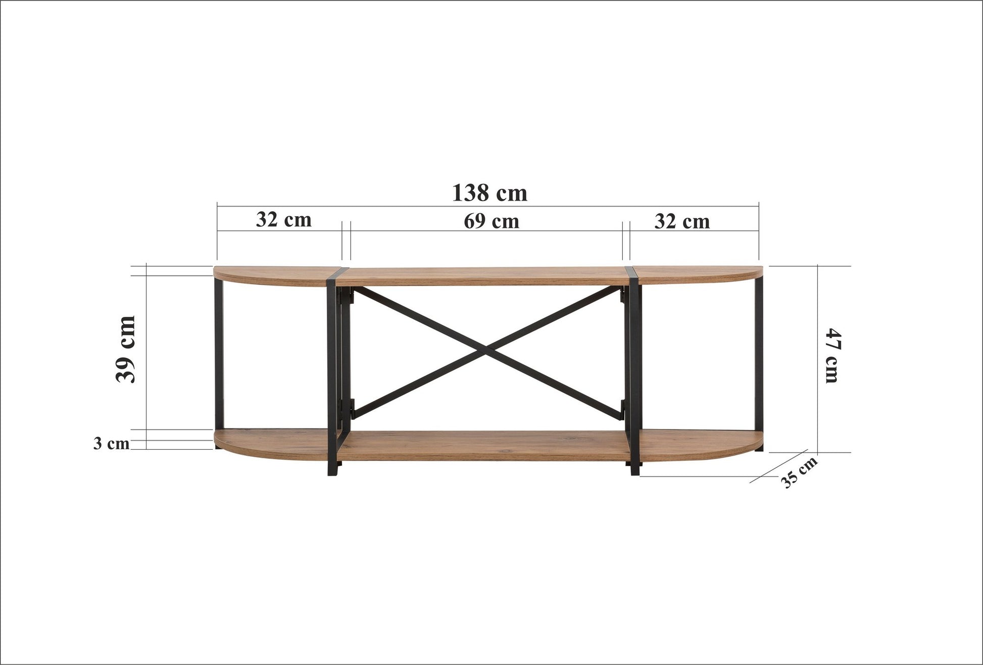 Móvel de TV – 138 x 47 x 35 cm – Pinho Atlântico e Preto – Metal e painel de partículas