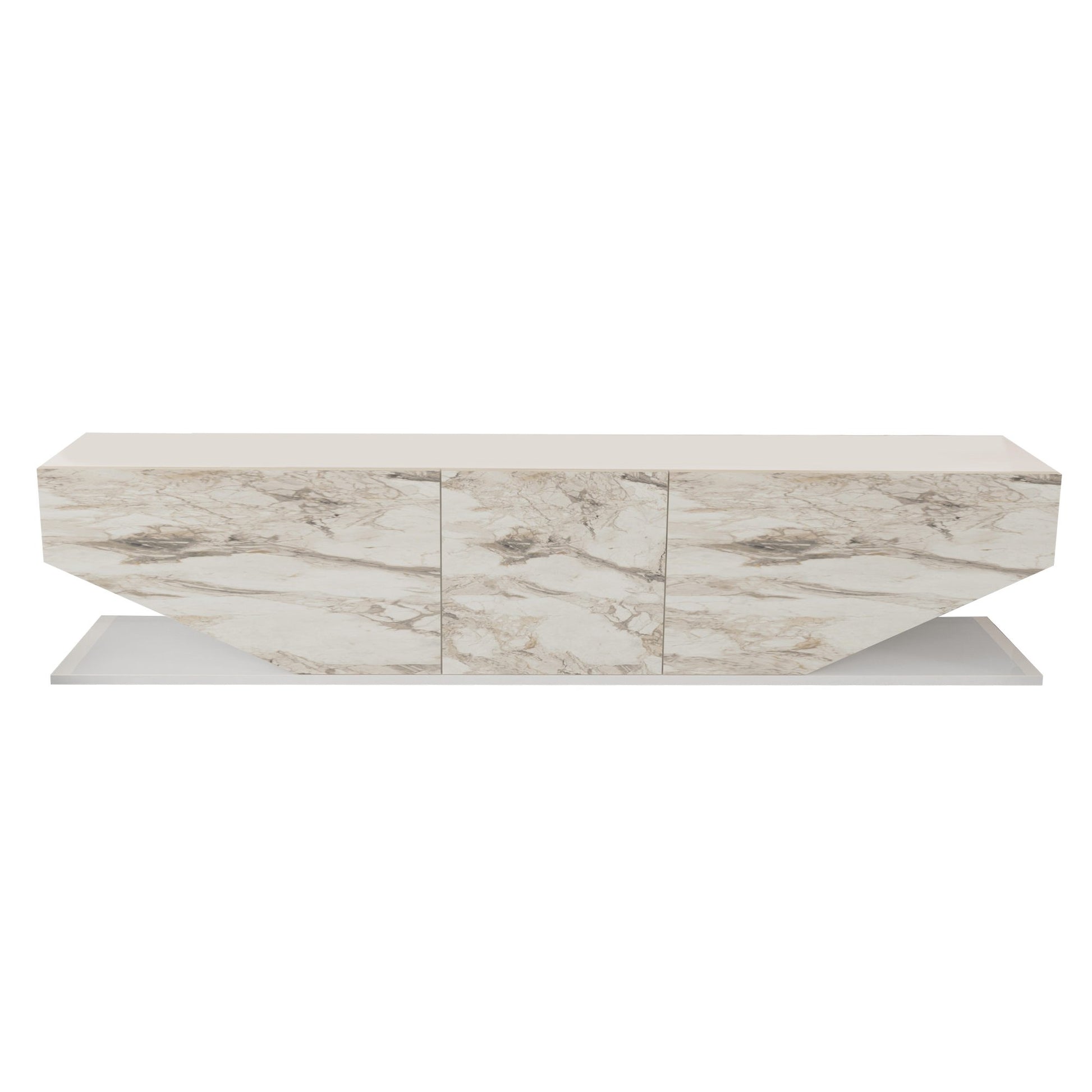 Com uma cor de mármore branco, este suporte para televisão combina facilmente com qualquer estilo de interior, criando um aspeto harmonioso e sem falhas. Os seus 180 cm de largura, 30 cm de profundidade e 45 cm de altura proporcionam um espaço amplo para acomodar o seu televisor e outros dispositivos multimédia, mantendo um aspeto elegante e sem confusão.