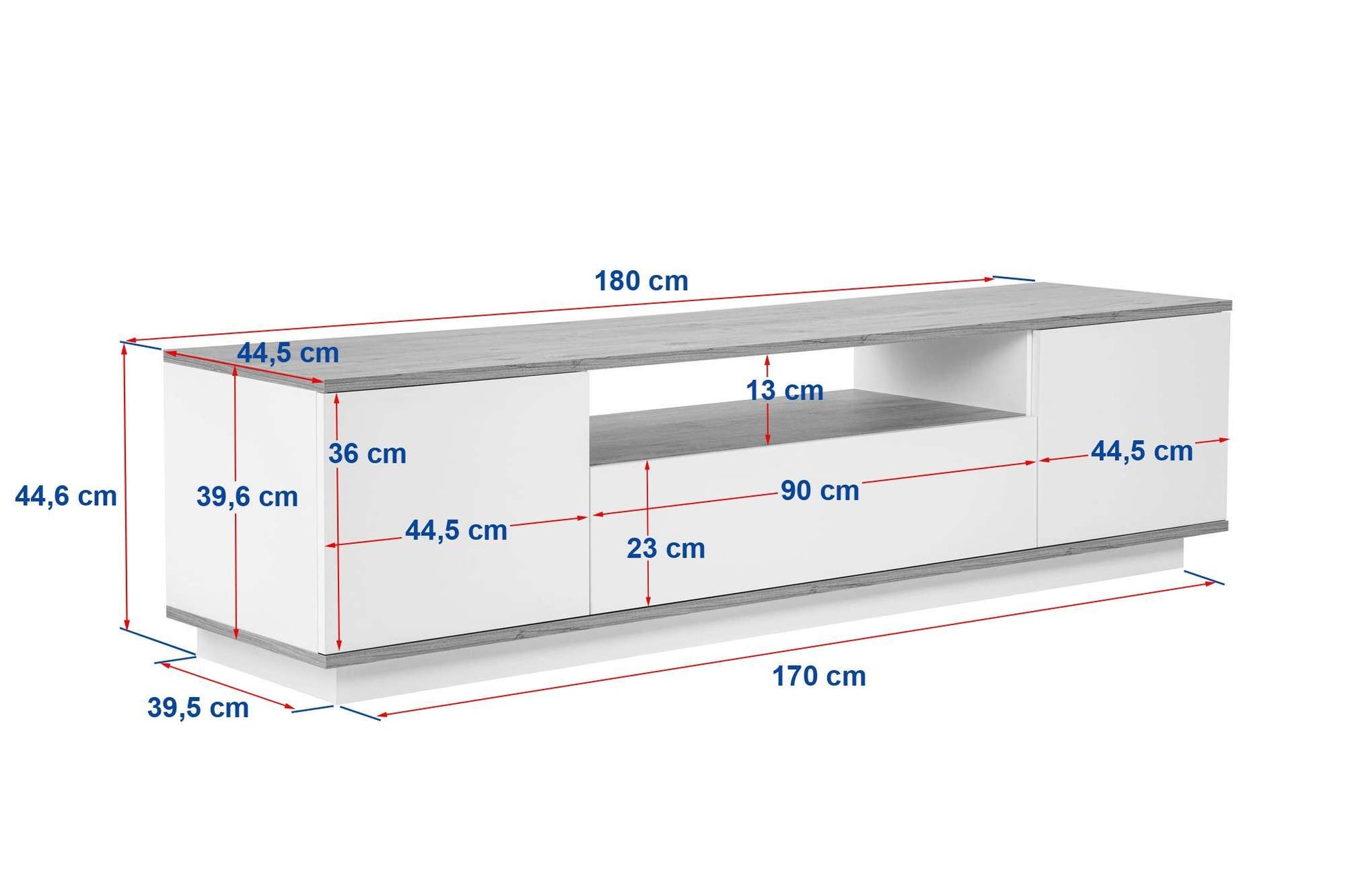 Móvel de TV elegante, 180 cm, antracite e pinho do Atlântico | Painel de partículas 100% revestido de melamina, 18 mm de espessura | Design moderno para salas de estar e espaços de entretenimento