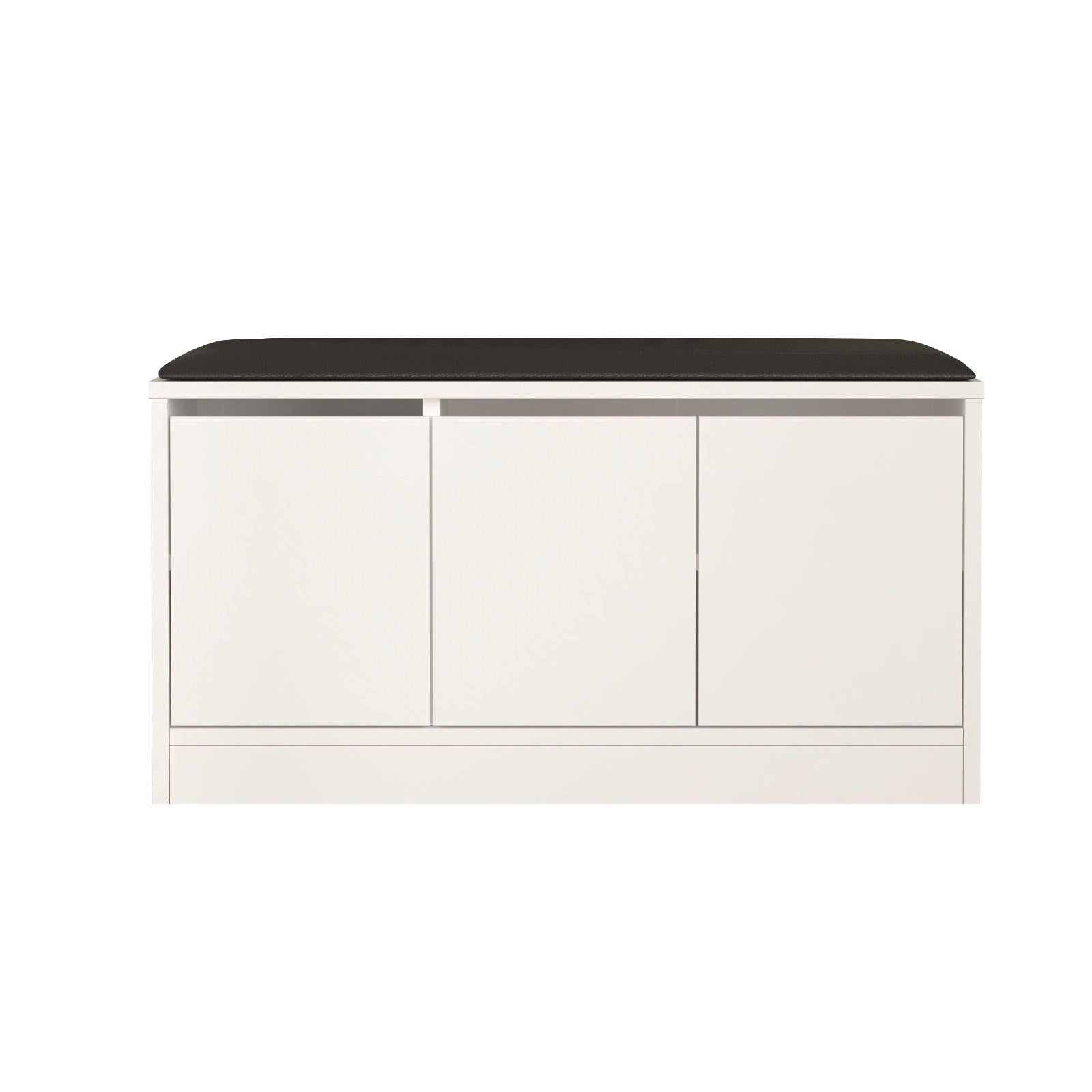 Sapateira moderna – 89,6 x 45,8 x 35,5 cm – Branca – Painel de partículas revestido em melamina e couro sintético