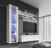 Conjunto de móveis Nerea branco modelo 2, ideal para dar um toque moderno e funcional à tua sala. Personalizável e versátil.