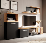Móvel de sala – 200x40x160 cm – Preto e Carvalho – Melamina