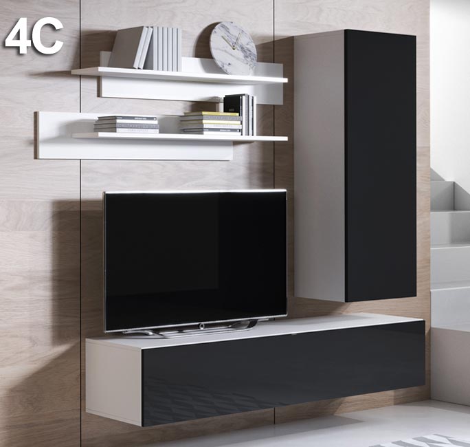 Conjunto de Móveis de Sala – 1,6m – branco e preto – melamina acetinada