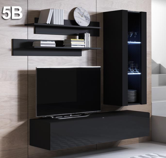 Conjunto de móveis Leiko 5B – 1,6m – preto – melamina