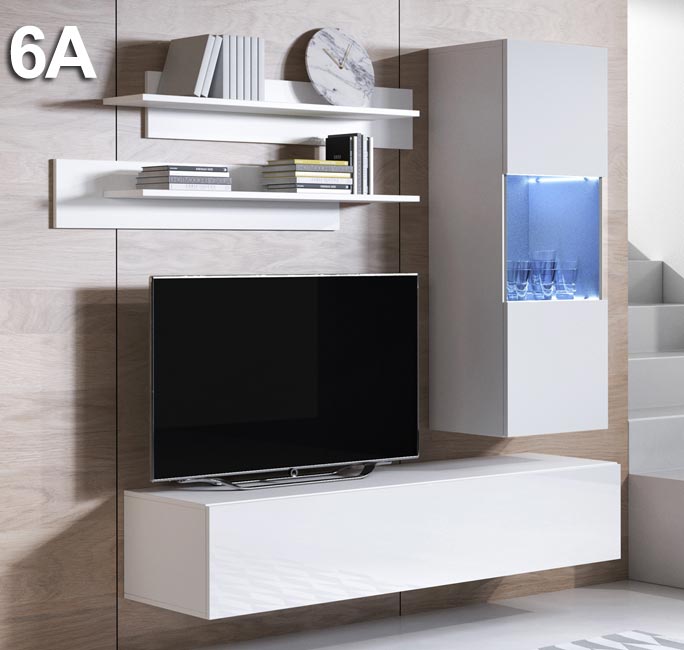 Conjunto de móveis de sala – 1,6m – branco – melamina e vidro