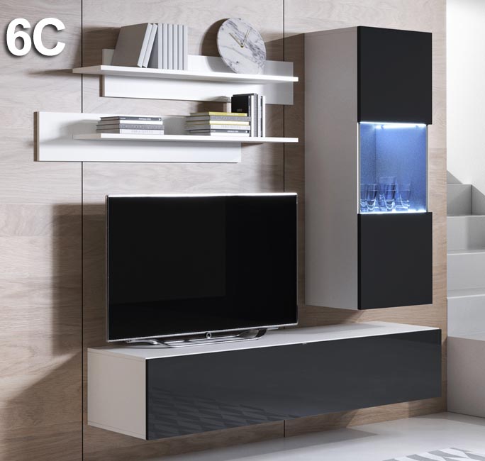 Conjunto de móveis de sala – 1,6m – branco e preto – melamina
