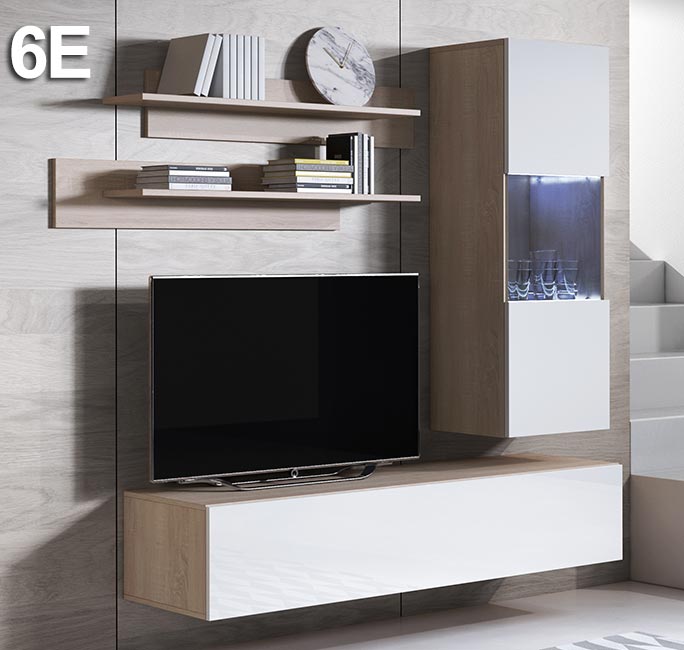 - Modelo 6: Móvel TV Luke H2, Armário colgante Luke V3, Kit estantes Luke.
