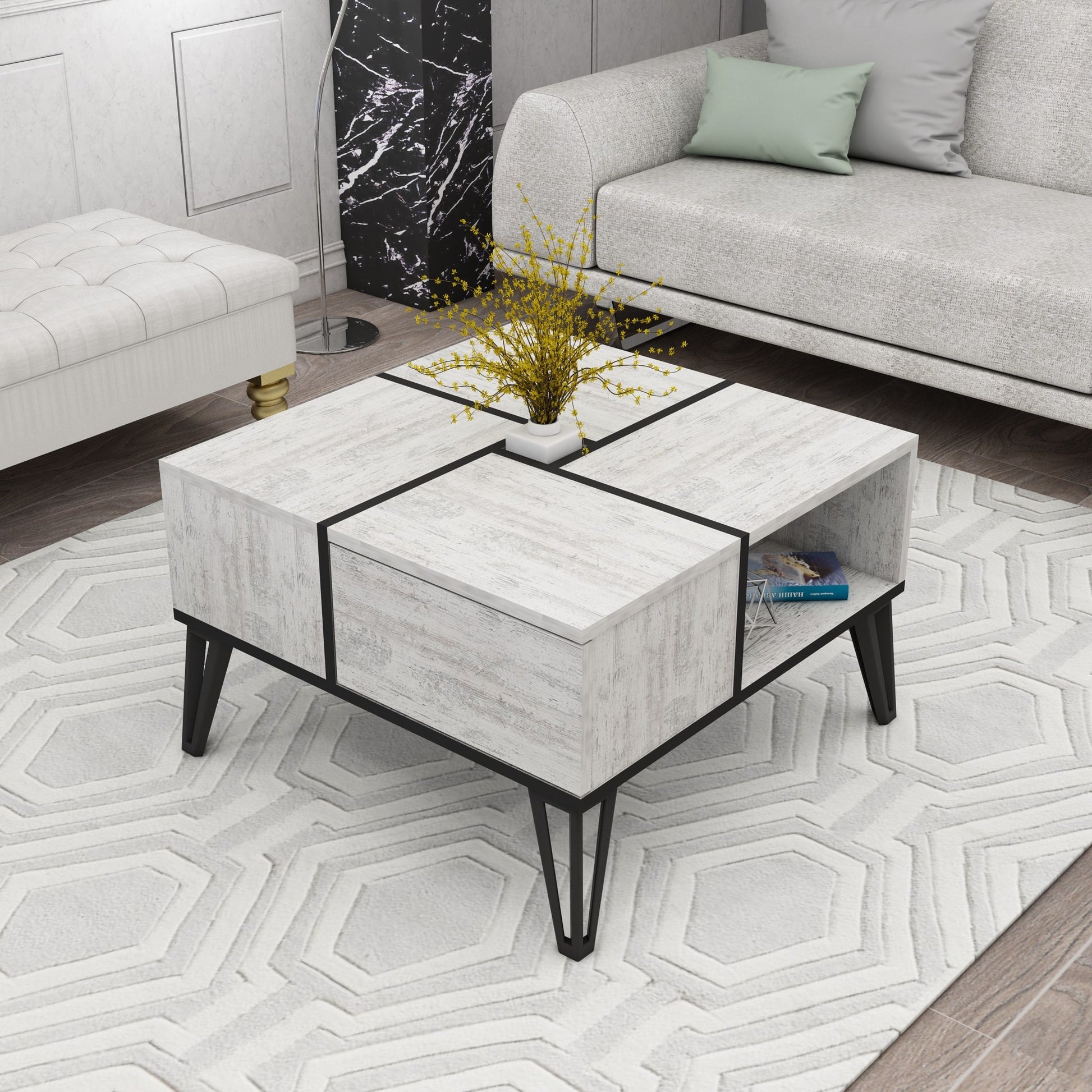 Mesa de Centro – 71,8 x 43,8 x 71,8 cm – Branco e Preto – Aglomerado revestido de melamina