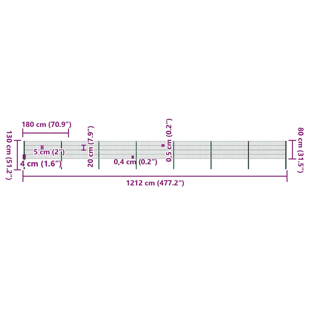 Painel de vedação com postes de ferro 1212x80 cm verde