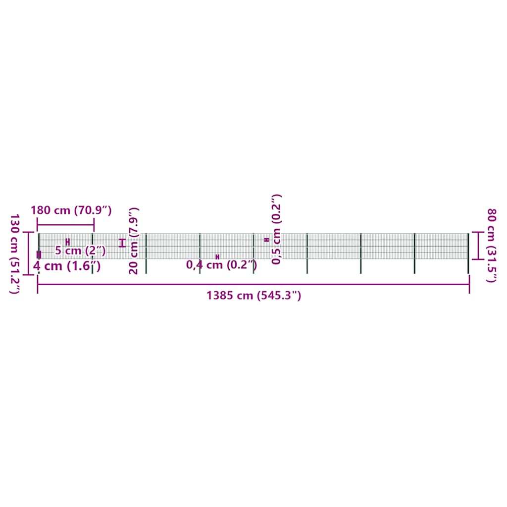 Painel de vedação com postes de ferro 1385x80 cm verde