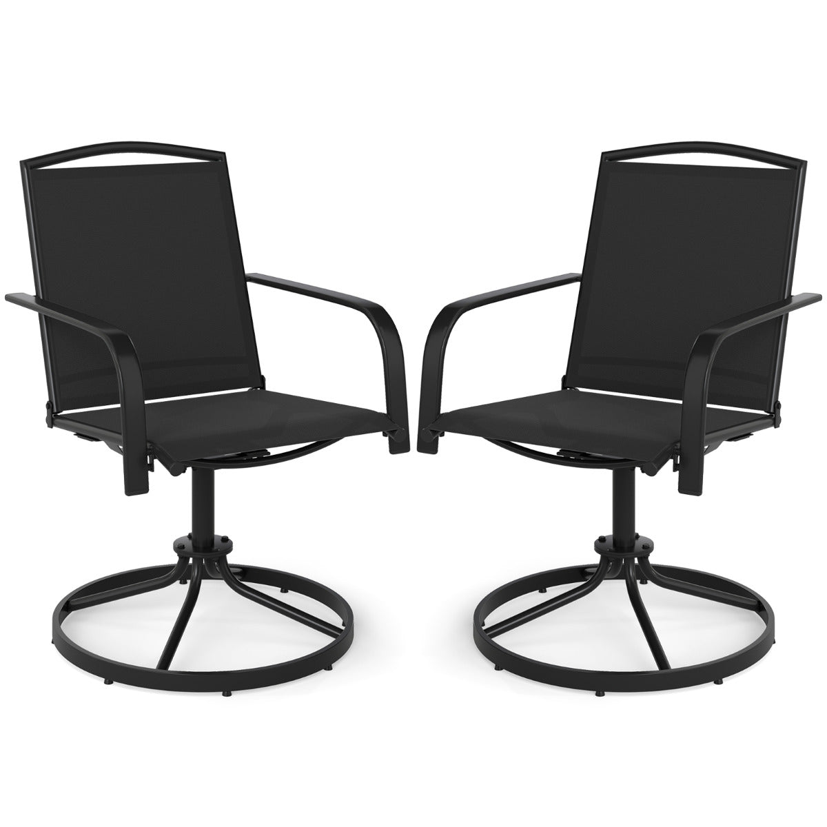 Par de 2 Cadeiras Giratórias de Pátio Baloiçantes em Malha 360° com Encosto Alto e Base Metálica Redonda para Jardim, Piscina, Varanda - Preto