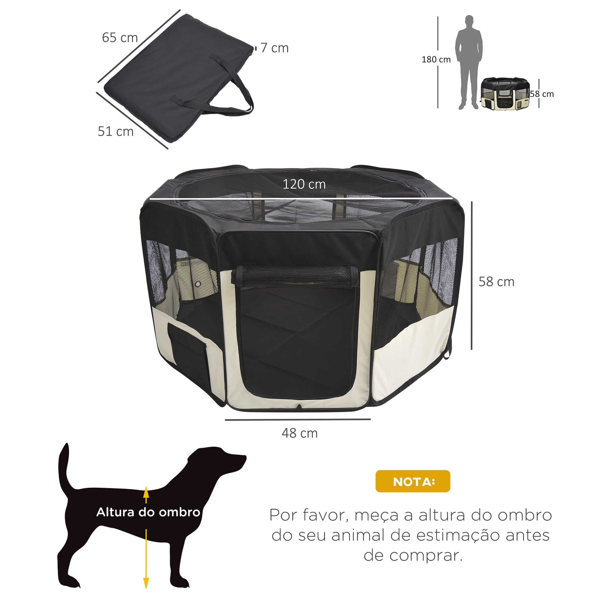 Parque Portátil para Cães e Gatos Ø120x58 cm Preto e Creme