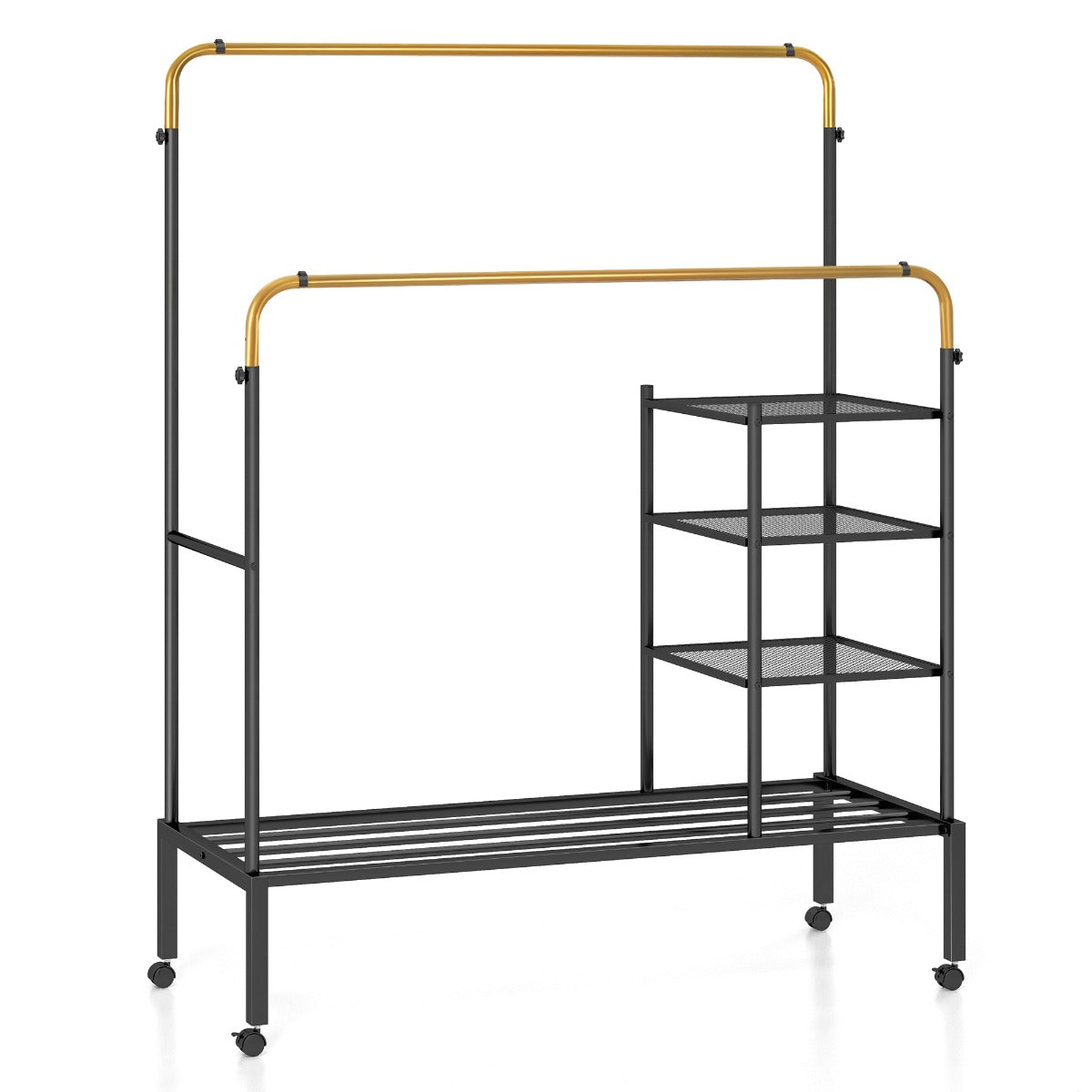 Cabide com Dupla Barra e Prateleiras – Aço Carbono – Ouro