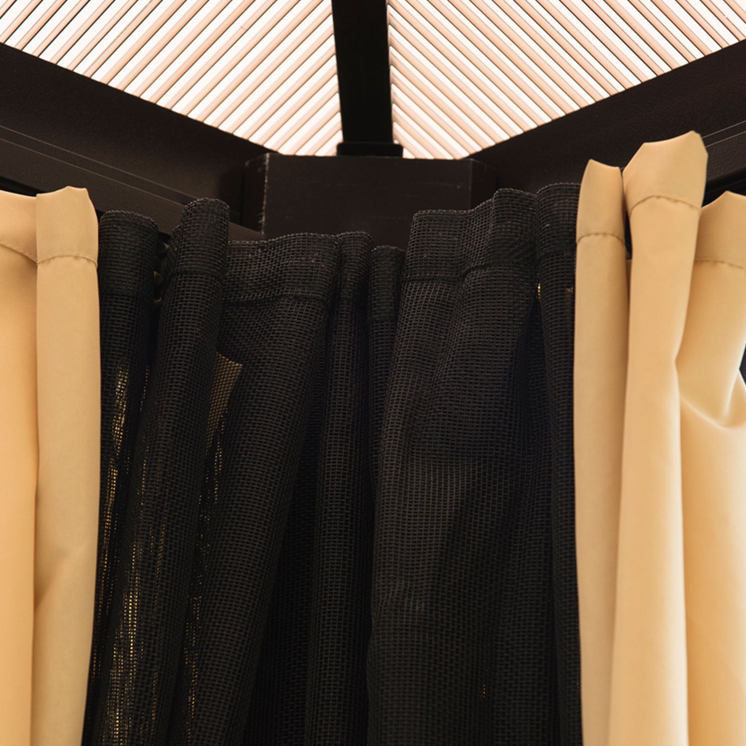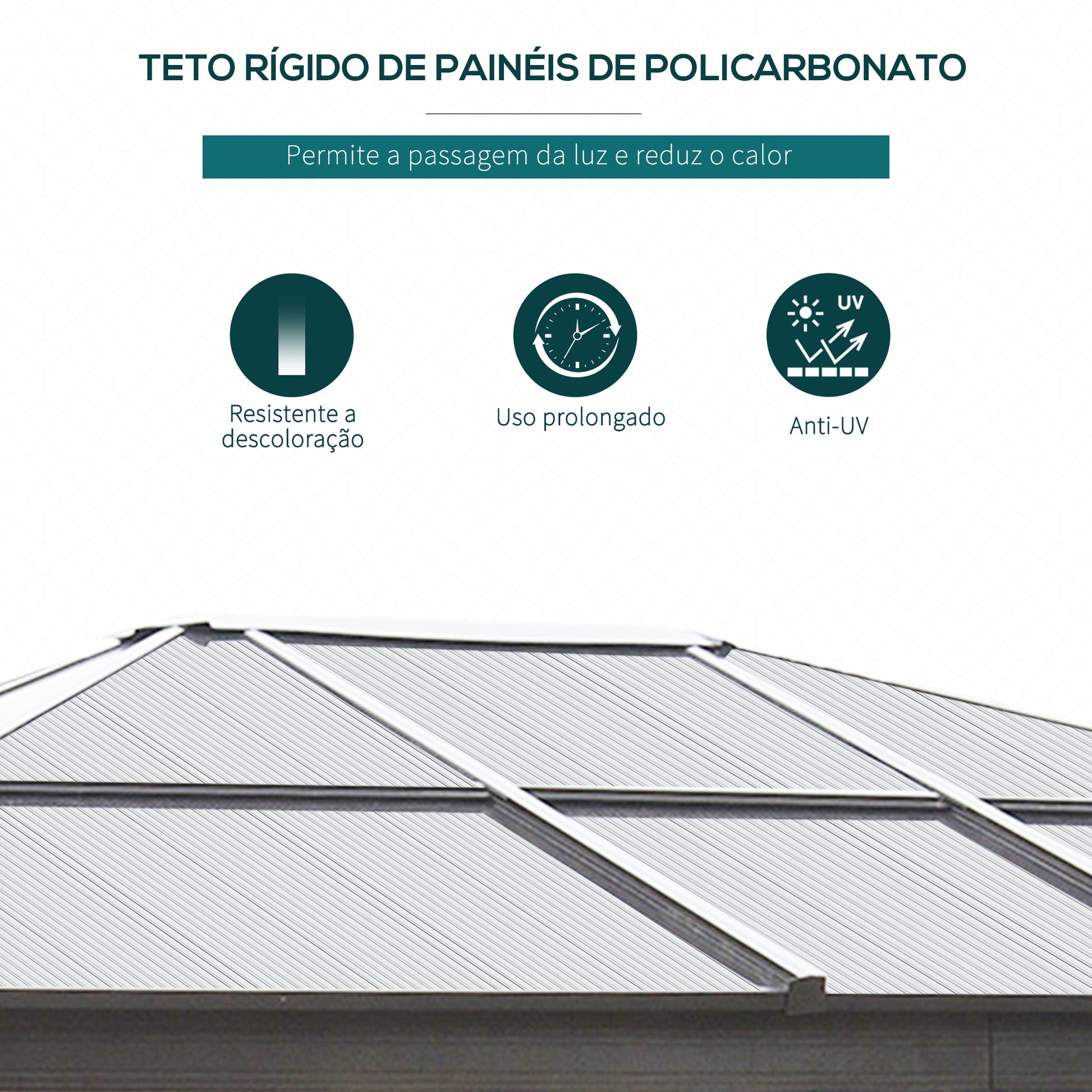 A pérgola é construída com uma estrutura de liga de alumínio resistente e revestida a pó, garantindo durabilidade e resistência. O teto de policarbonato oferece proteção contra os raios UV e a chuva, enquanto as paredes laterais com mosquiteiras garantem privacidade e proteção contra insetos. Aproveite este espaço versátil e elegante em seu jardim!
