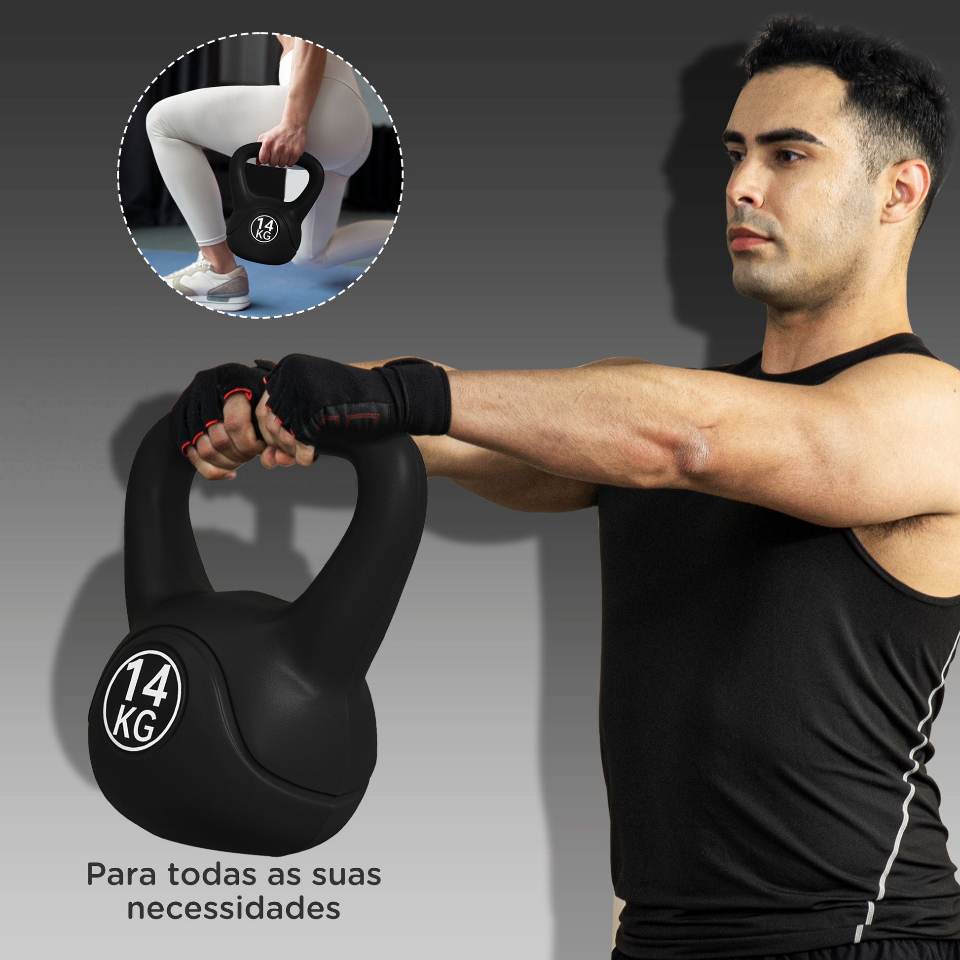 - Outras especificações relevantes: Alça larga e lisa para pegada confortável, peso claramente impresso, cobertura de PVC durável, base plana para estabilidade