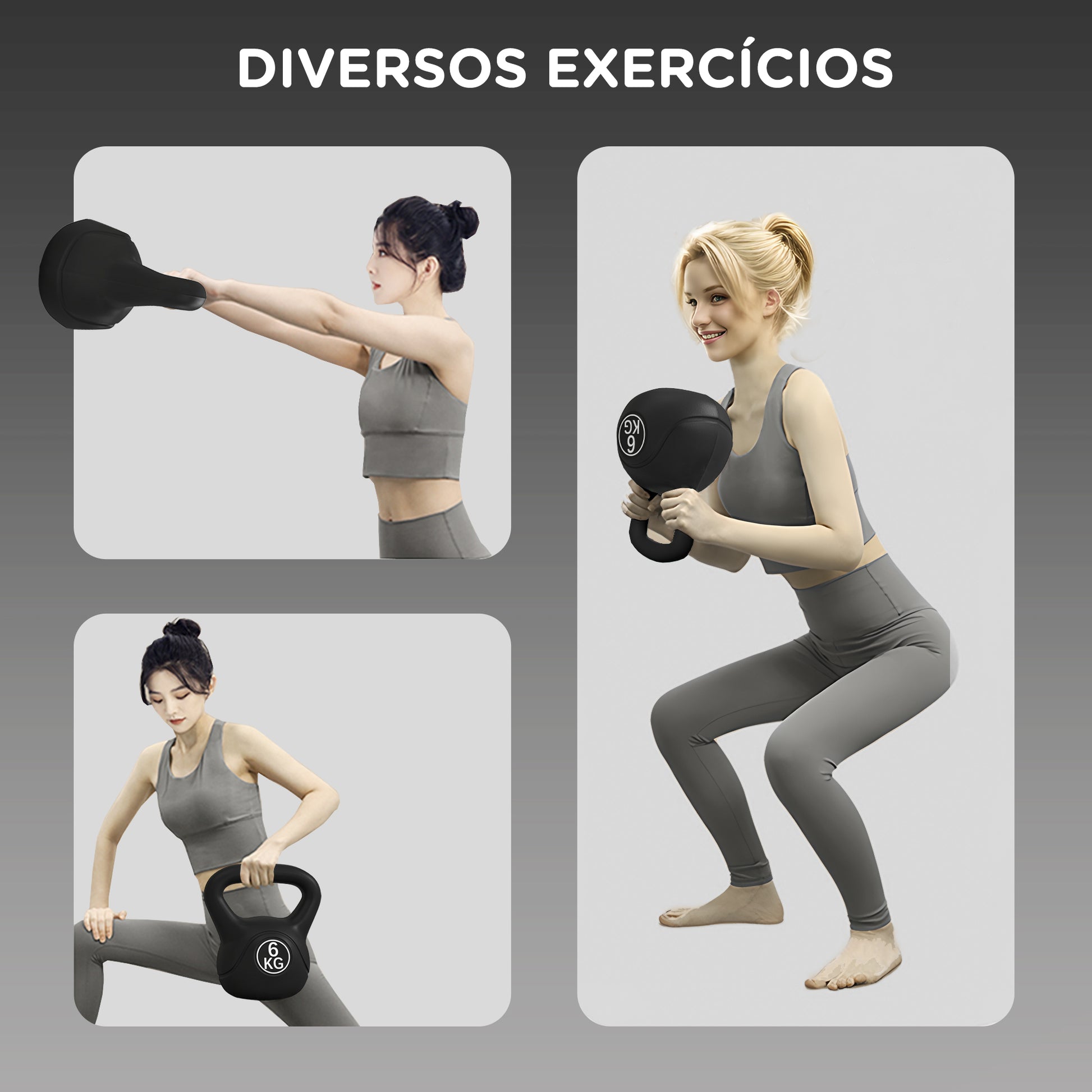 Peso Russo de 6 kg Kettlebell Fitness Preenchido de Areia 20x13x22 cm Preto