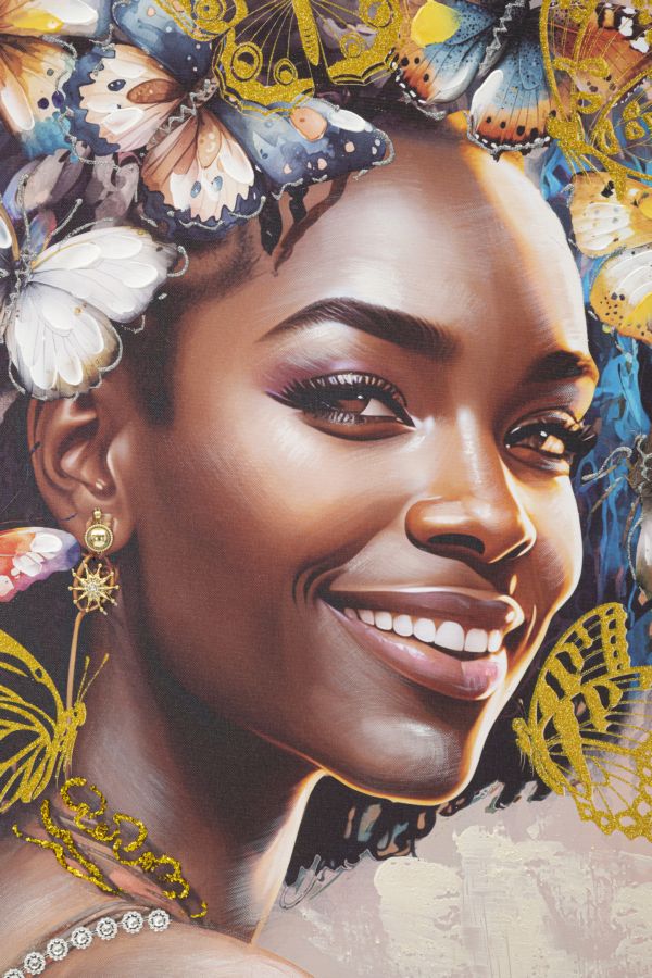 Descubra a elegância única da pintura em tela MODERN, uma peça de arte que captura a essência da sofisticação contemporânea. Com um design impressionante de borboletas coloridas em relevo adornando o cabelo de uma figura feminina, esta obra é um verdadeiro testemunho de criatividade e atenção ao detalhe. Envolvida por uma moldura de metal dourado e suportada por madeira de abeto e tela de alta qualidade, esta pintura não só embeleza qualquer espaço, como também representa a fusão perfeita entre arte e funcionalidade. Transforme o seu ambiente com esta peça distinta e inspiradora.