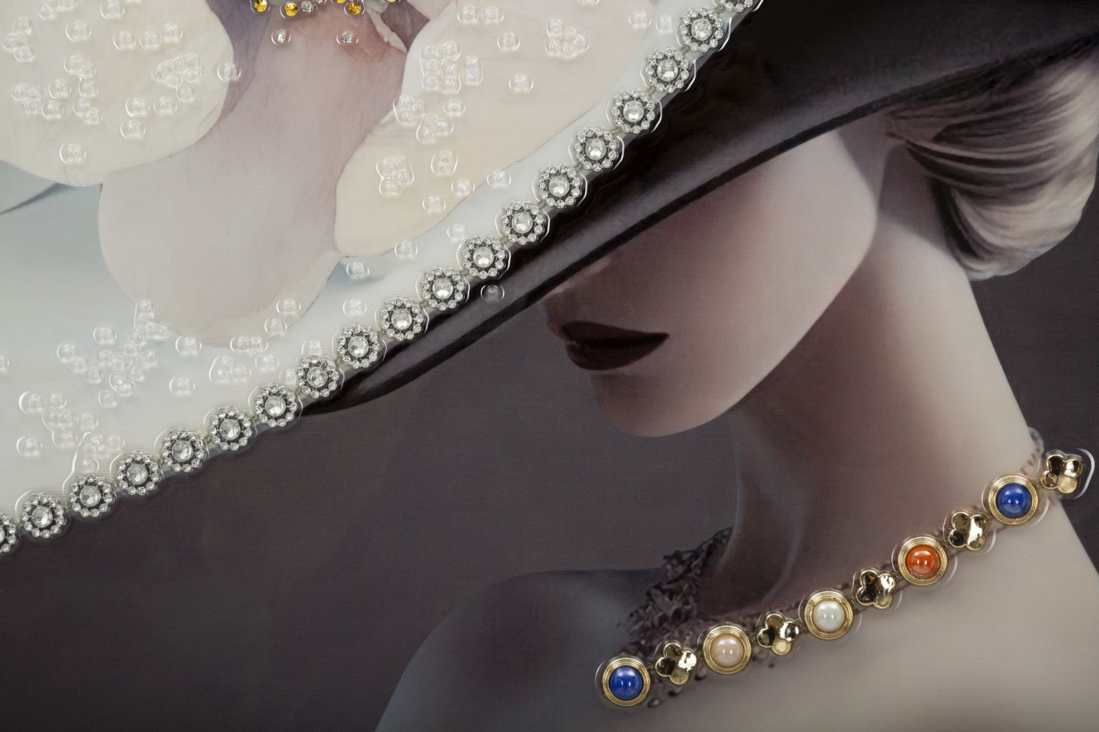 Descubra a sofisticação intemporal com a nossa pintura em tela MODERN. Com um design deslumbrante de uma mulher adornada com um elegante chapéu de flores, esta peça é um verdadeiro tributo à elegância e ao requinte. Envolvida por uma moldura de madeira de abeto e realçada por um toque de luxo com uma moldura metálica dourada, esta obra de arte multicolor não só enriquece qualquer espaço, como também reflete um estilo moderno e distinto. Ideal para aqueles que valorizam qualidade e estética, esta pintura é perfeita para transformar a sua casa num espaço de pura inspiração.