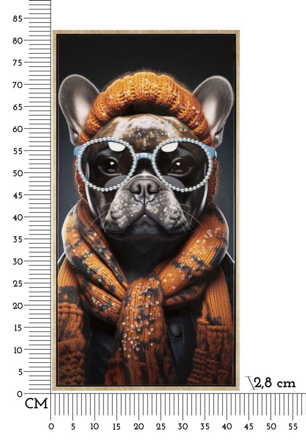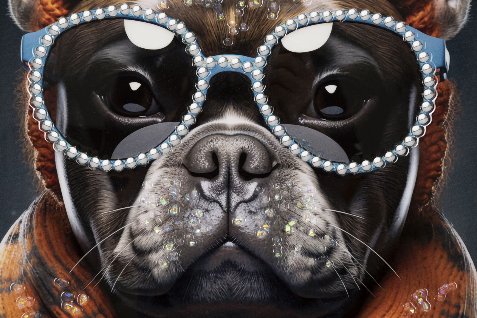 Transforme o seu espaço com a nossa pintura em tela MODERN, que combina arte e elegância num design contemporâneo. O quadro apresenta um encantador buldogue com óculos de sol, transmitindo um toque de personalidade e estilo a qualquer ambiente. Com um robusto enquadramento em madeira de abeto e um sofisticado aro de metal dourado, esta peça destaca-se pelas suas aplicações em relevo que conferem um efeito tridimensional único. Ideal para quem aprecia a fusão entre modernidade e qualidade, é o complemento perfeito para dar vida e carácter à sua decoração.