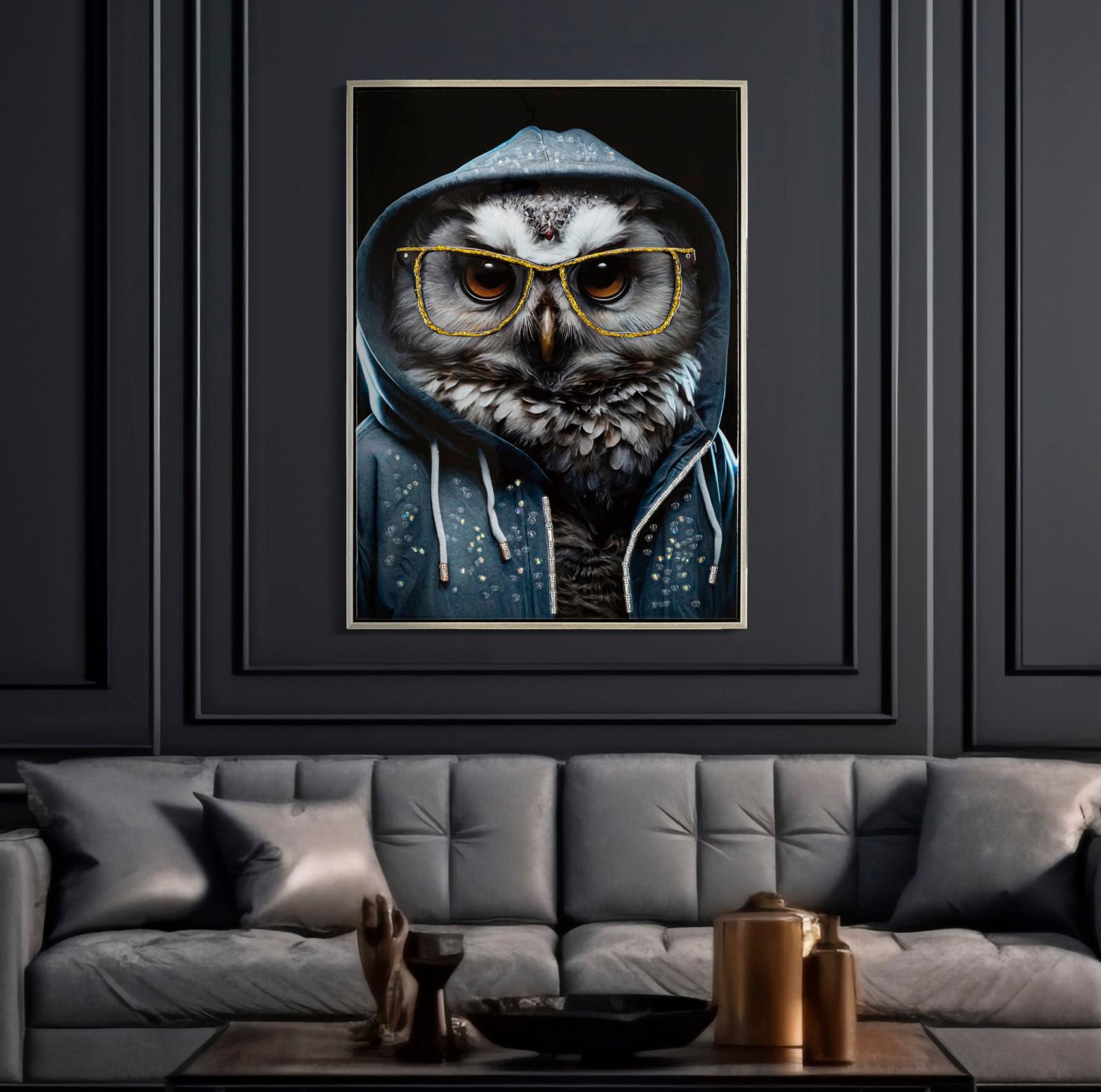 Descubra a elegância e a originalidade da pintura em tela MODERN, uma peça de arte única que combina um design moderno com um toque de sofisticação. Esta obra apresenta uma coruja estilizada a usar óculos dourados, transmitindo uma atitude confiante e descontraída. Com aplicações em relevo, esta pintura ganha vida e profundidade, sendo o complemento perfeito para qualquer espaço contemporâneo. Produzida com materiais de alta qualidade, como metal, madeira de abeto e tela, esta peça garante durabilidade e um acabamento premium. Transforme o seu ambiente com esta obra de arte exclusiva, que certamente será o foco de todas as atenções.