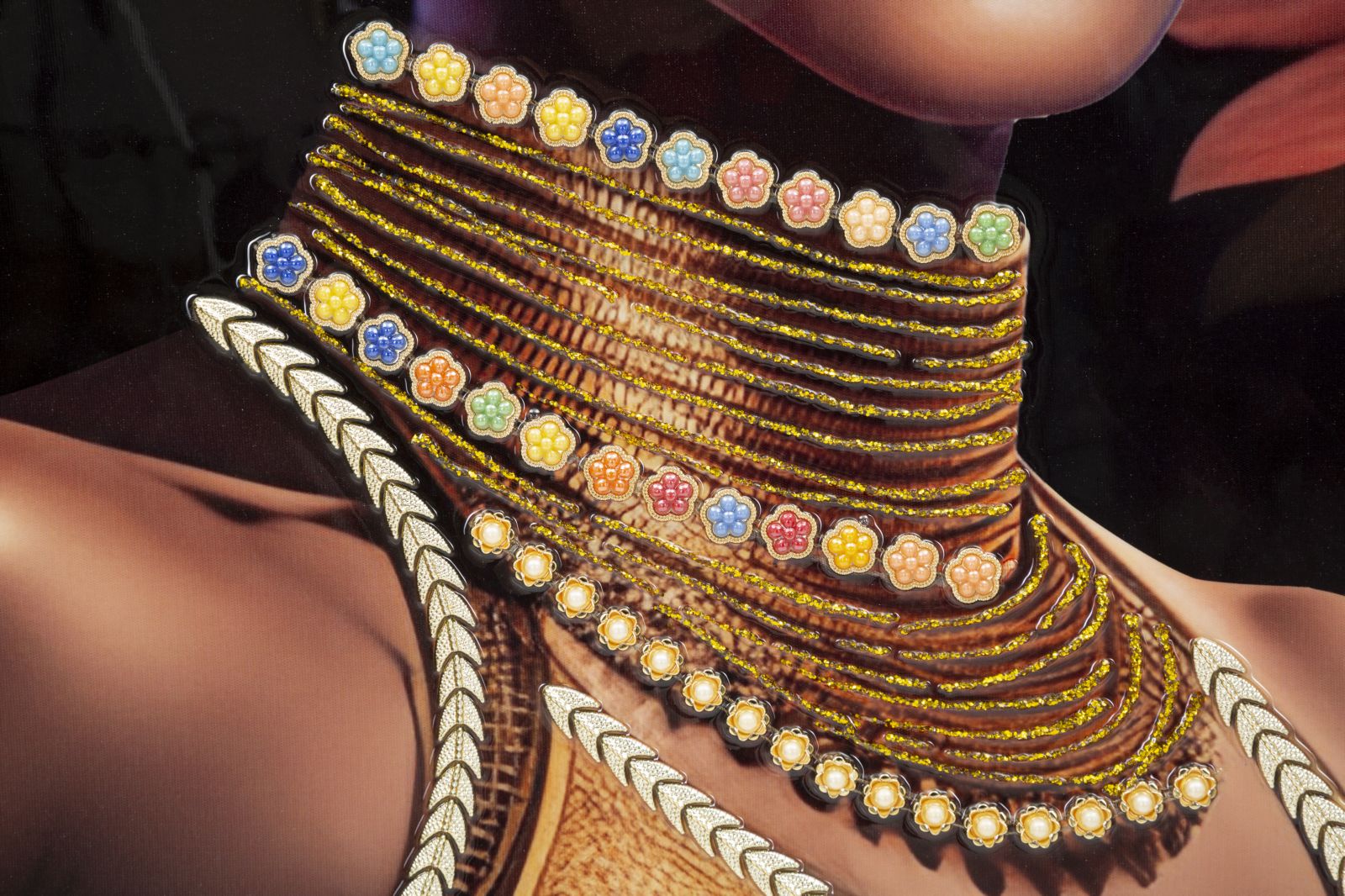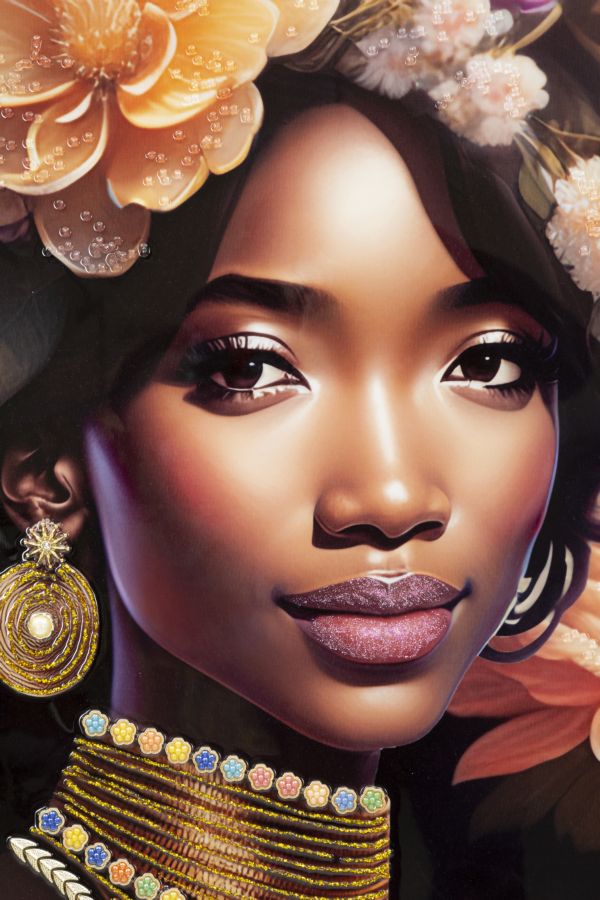 Descubra a elegância intemporal da pintura em tela MODERN. Com detalhes meticulosos, esta obra de arte retrata uma mulher em trajes tradicionais adornada com flores, conferindo um toque de sofisticação a qualquer espaço. O quadro é emoldurado por uma estrutura de madeira de abeto e finalizado com uma moldura metálica dourada, garantindo durabilidade e um acabamento requintado. Ideal para quem valoriza arte de qualidade e design contemporâneo, esta peça multicolorida é perfeita para dar vida e personalidade à sua casa ou escritório.