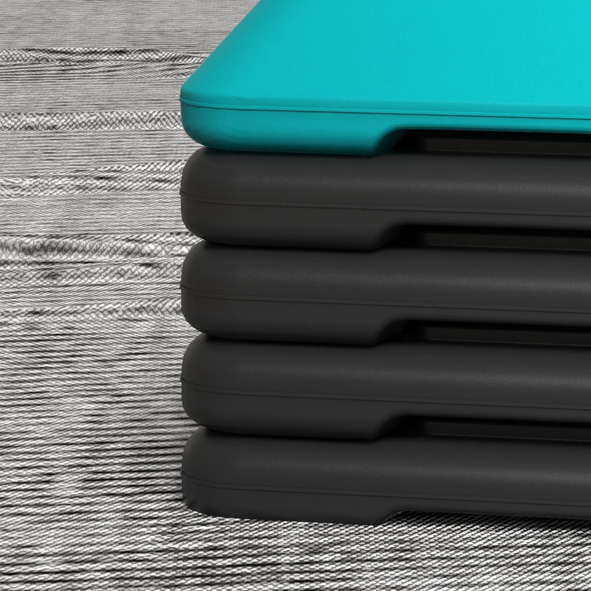 A plataforma step aeróbico azul oferece um treino versátil e seguro, com ajuste de altura de 10 a 30 cm para intensidades variadas.