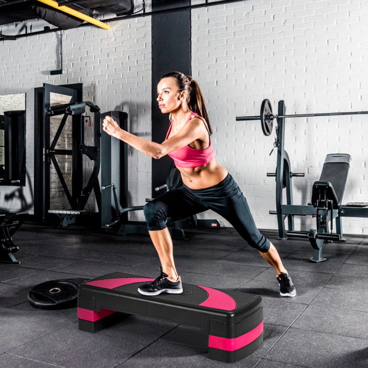 Plataforma Step para Aeróbica e Treino em Casa, Ginásio e Escritório Preto e Rosa 78,5 x 30 x 10-20 cm