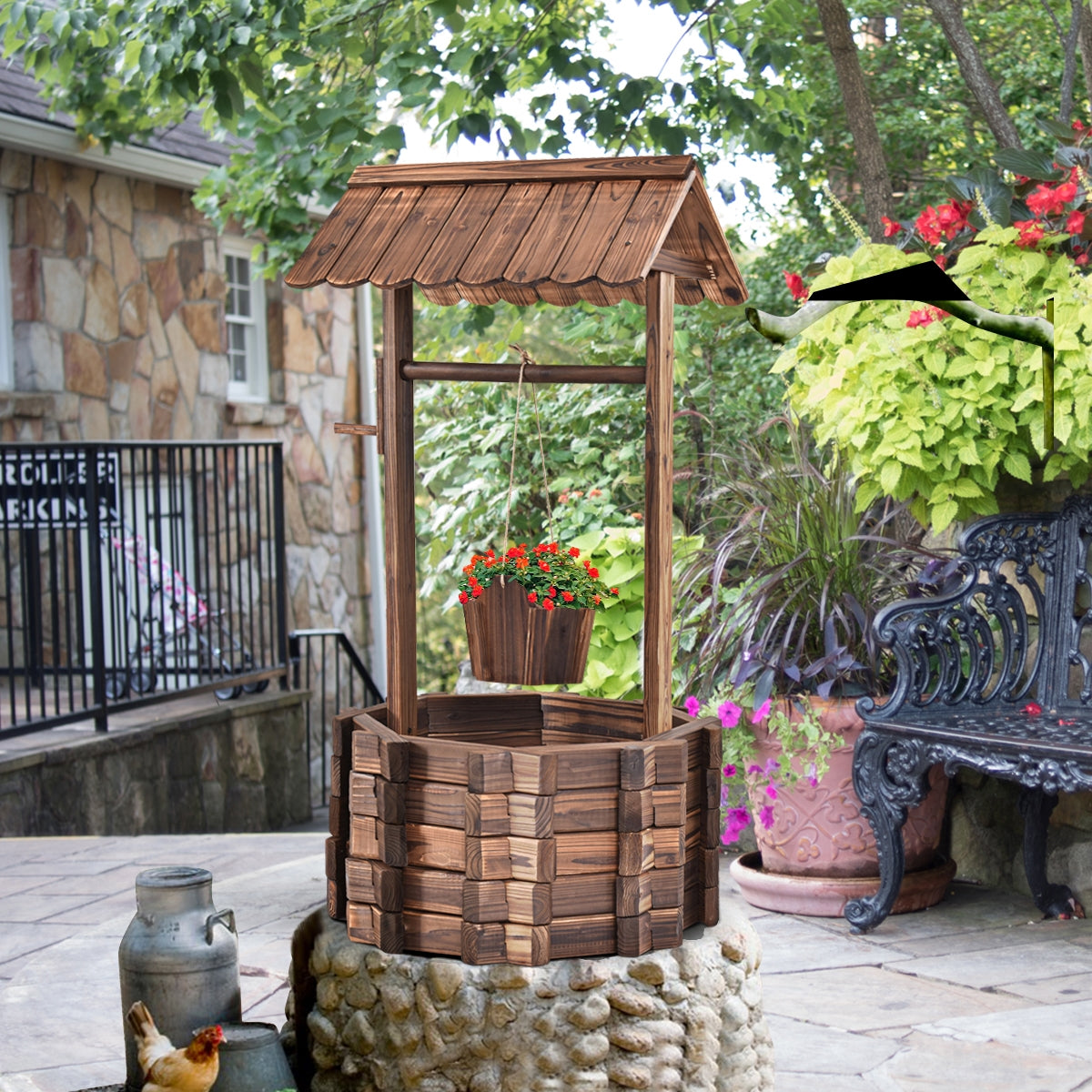 - Durável: feito de madeira de abeto com superfície carbonizada, o nosso poço é durável e resistente às intempéries, perfeito para uso exterior durante todo o ano.