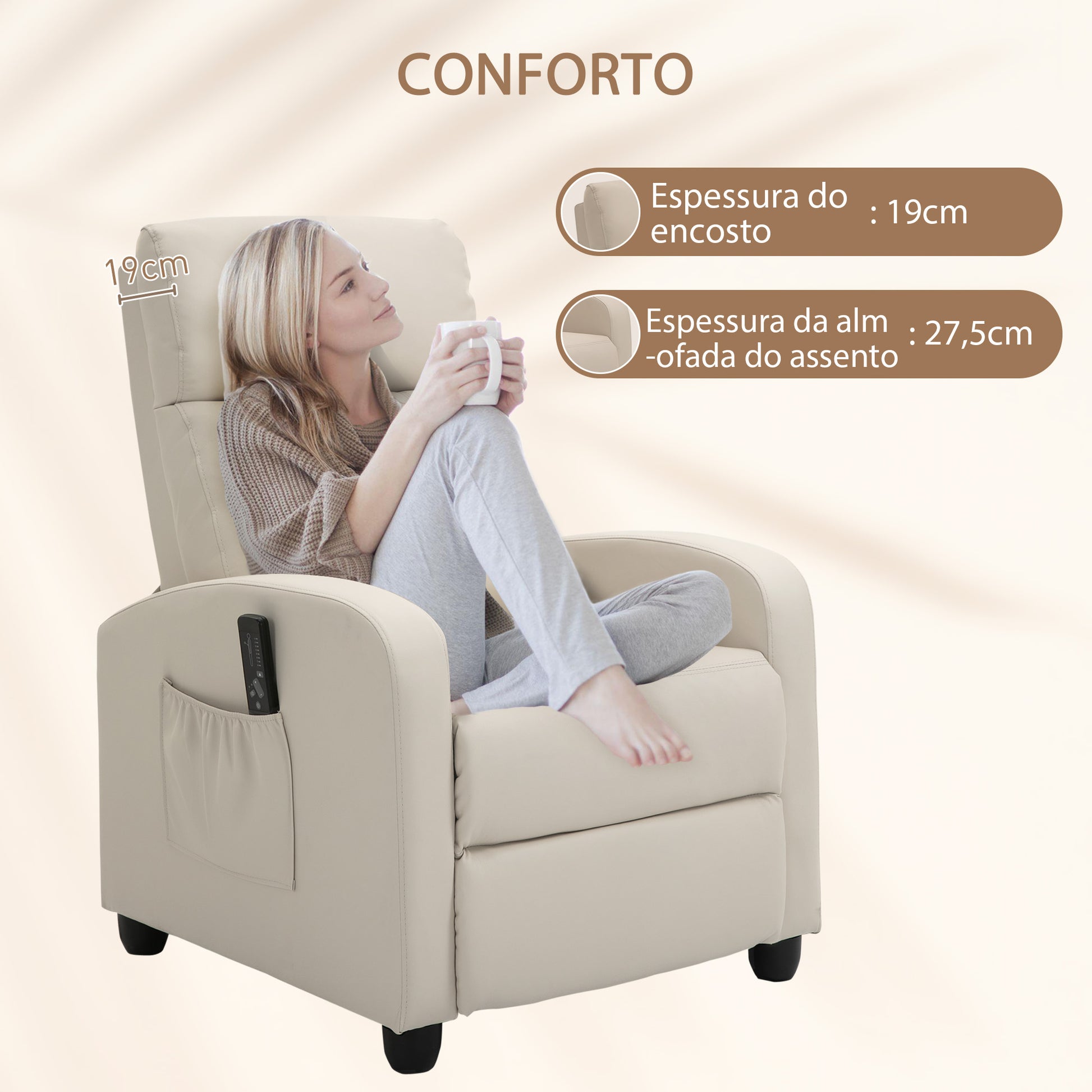 Poltrona de Massagem Relax Reclinável 68x88x98 cm - Cor Creme