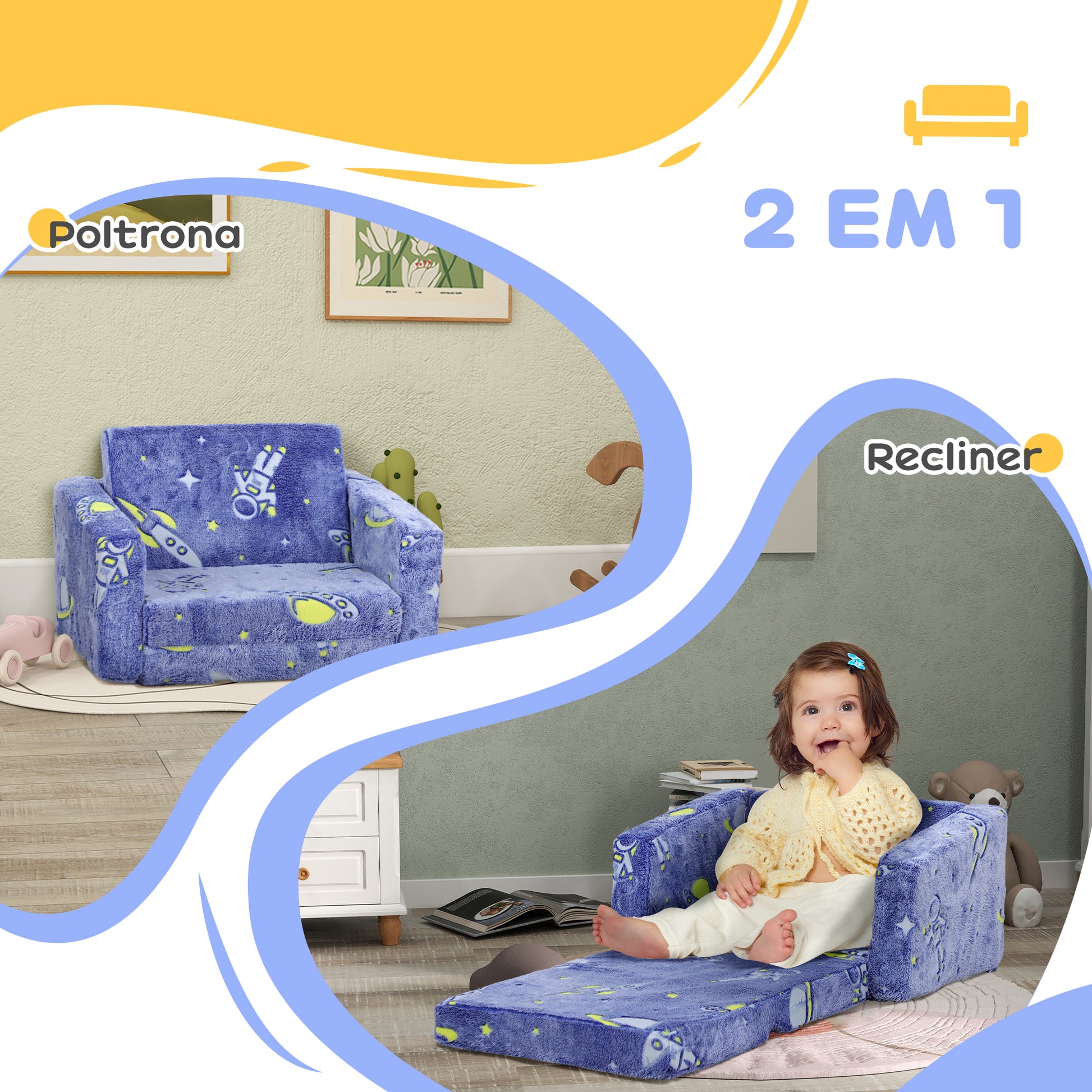 Poltrona Infantil Azul 59x105x30,5 cm - Tecido Luminoso Desenho Espacial
