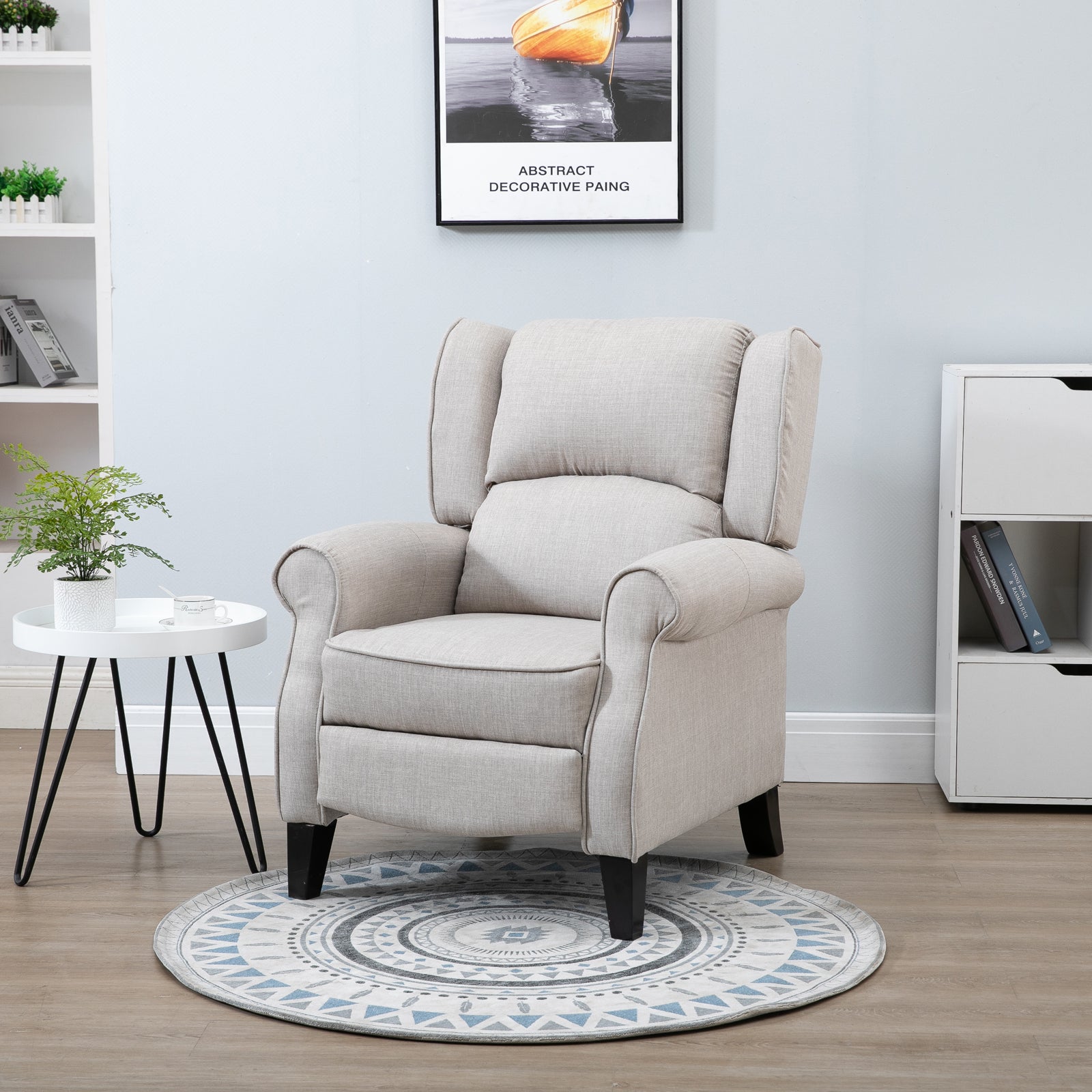 Aproveite o melhor do conforto e do design com esta poltrona reclinável em cinza claro, que se adapta perfeitamente a qualquer ambiente da sua casa.