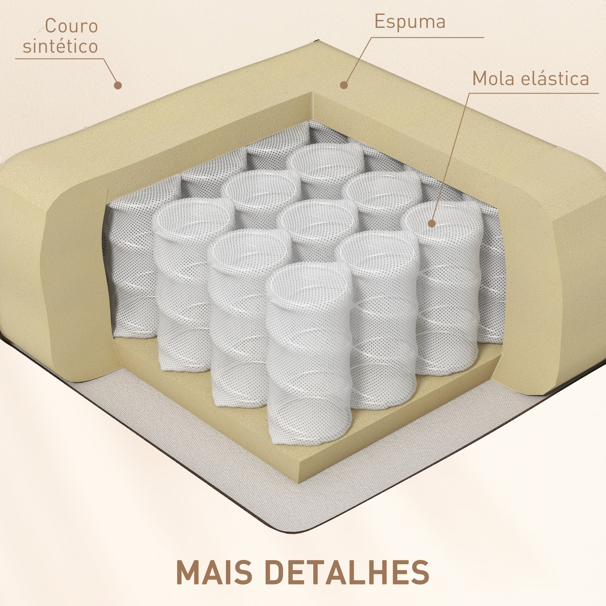 - Materiais: Couro sintético, metal e espuma